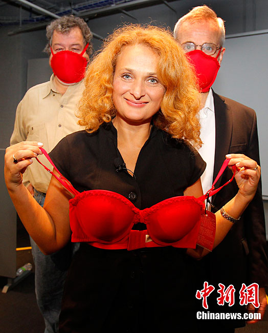 當(dāng)?shù)貢r(shí)間9月28日,科學(xué)家博德納在美國(guó)麻省理工學(xué)院博物館公開(kāi)展演了她的發(fā)明——“應(yīng)急胸罩”。該款胸罩可以在瞬間變成防毒面具,保護(hù)使用者免遭致命生化制劑的攻擊。憑借這款“防毒胸罩”,博德納曾獲得2009年“搞笑諾貝爾獎(jiǎng)”的公共健康獎(jiǎng)。
