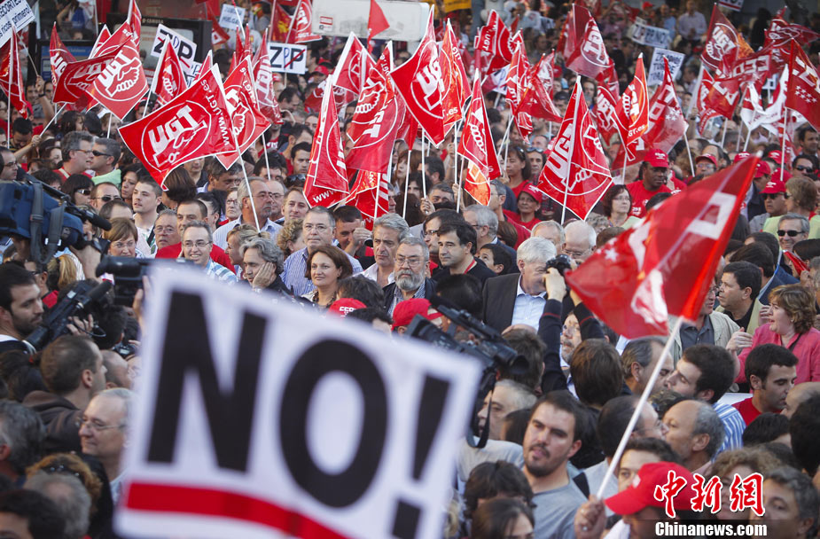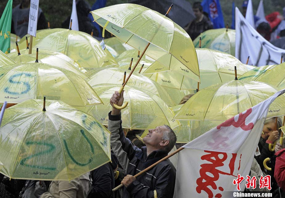 9月29日,歐洲工會組織在布魯塞爾舉行大規(guī)模示威游行,反對增加稅收和削減公共開支的經(jīng)濟(jì)緊縮措施,要求優(yōu)先保障勞動者的工作崗位,減少失業(yè)率。包括西班牙、愛爾蘭、希臘、意大利、法國等多個歐洲國家當(dāng)天也爆發(fā)了大規(guī)模的游行示威活動。圖為在波蘭華沙舉行的游行示威活動。