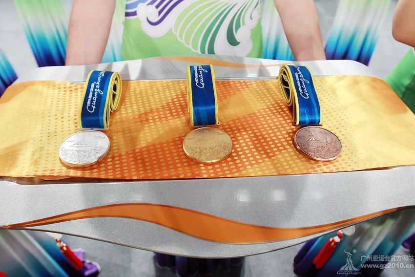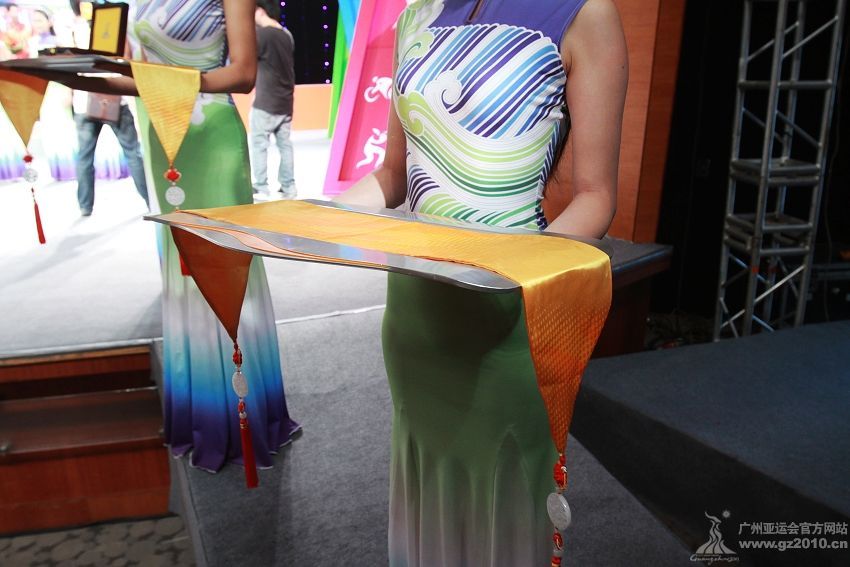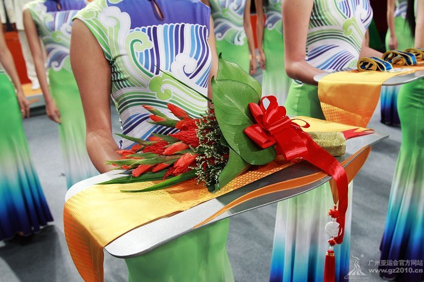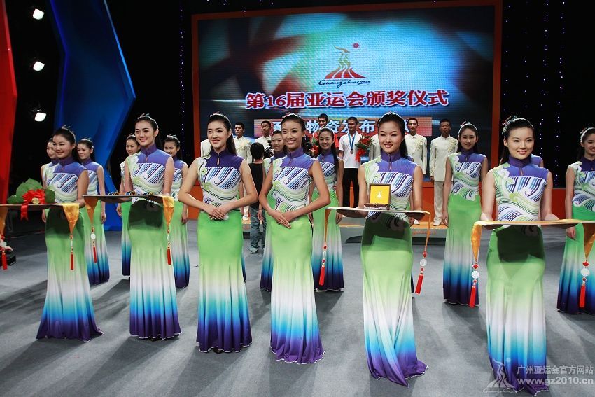 9月29日下午,第16屆亞運(yùn)會(huì)頒獎(jiǎng)儀式系列物資發(fā)布儀式在廣州市二少年宮舉行。圖為頒獎(jiǎng)禮儀。圖片來(lái)源:廣州亞運(yùn)會(huì)官網(wǎng)