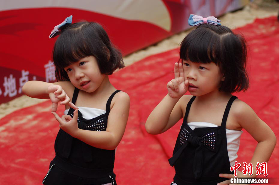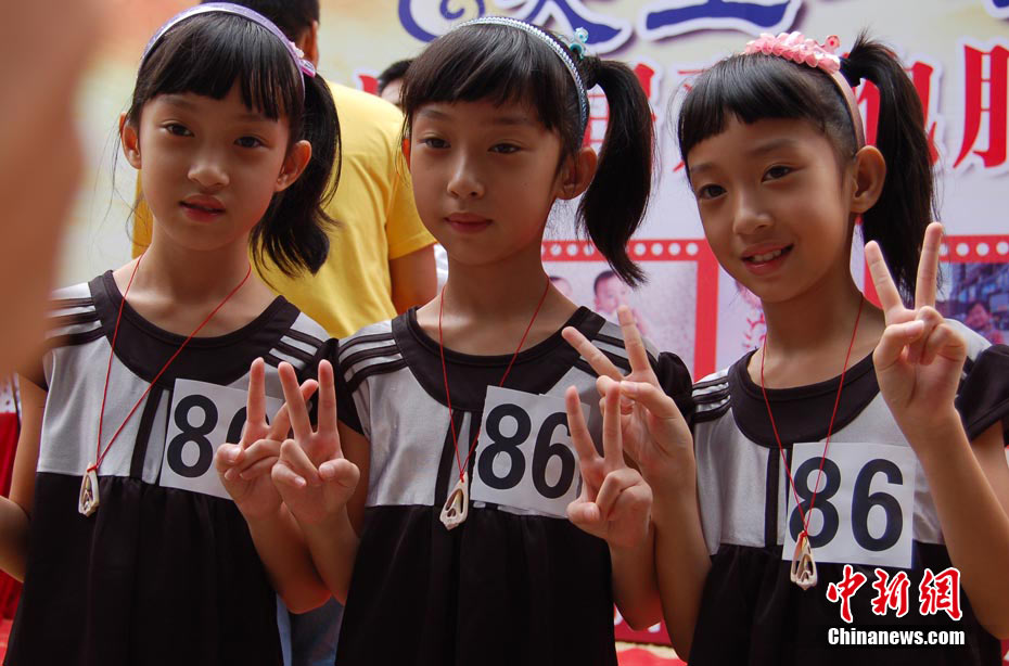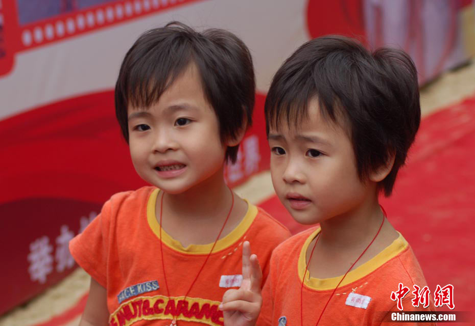 10月1日,國(guó)慶長(zhǎng)假第一日,70多對(duì)雙胞胎、三胞胎歡聚廣西南寧市人民公園,參加“南寧首屆雙胞胎歡樂節(jié)”,比拼相似度與默契程度。參加活動(dòng)的雙胞胎有長(zhǎng)得酷似李宇春、周迅、大小S等明星,引來眾多好奇目光。中新社記者 劉萬強(qiáng) 攝