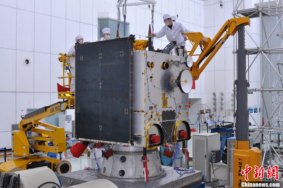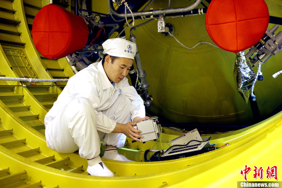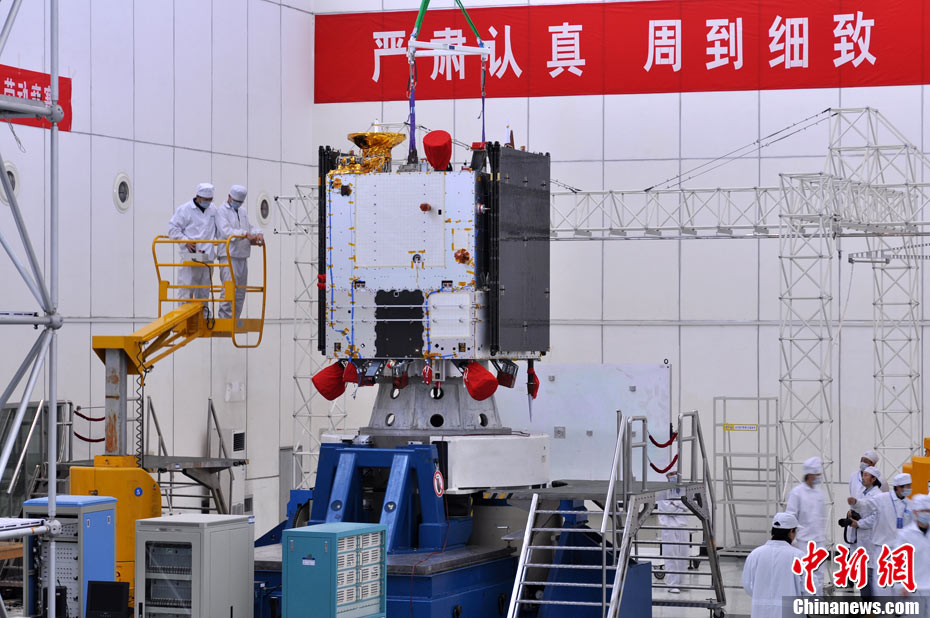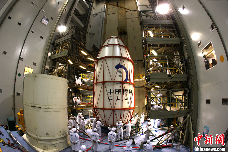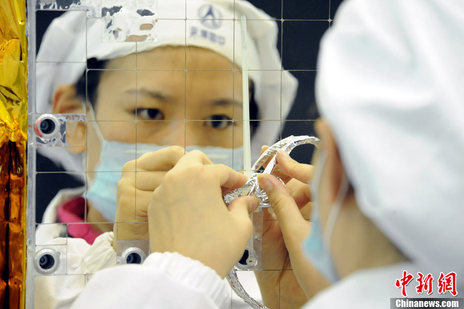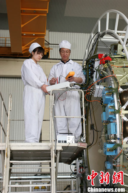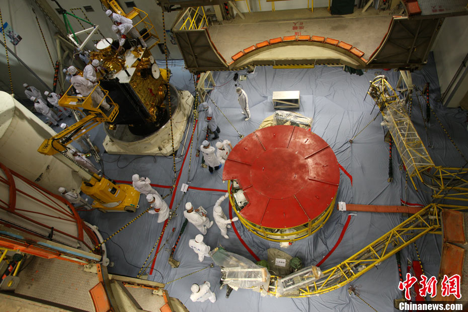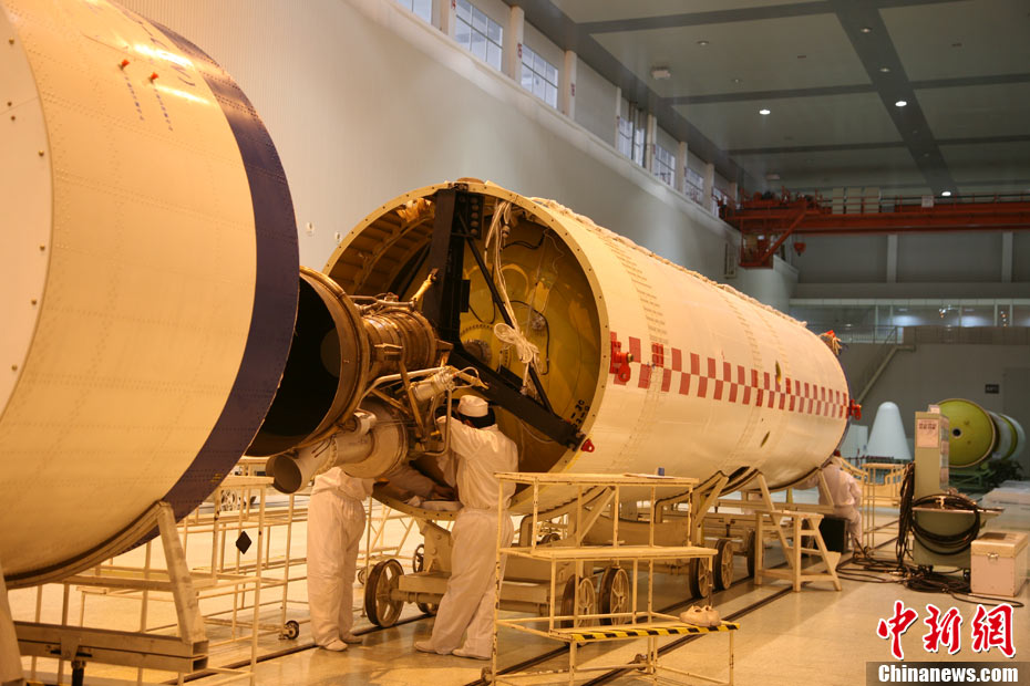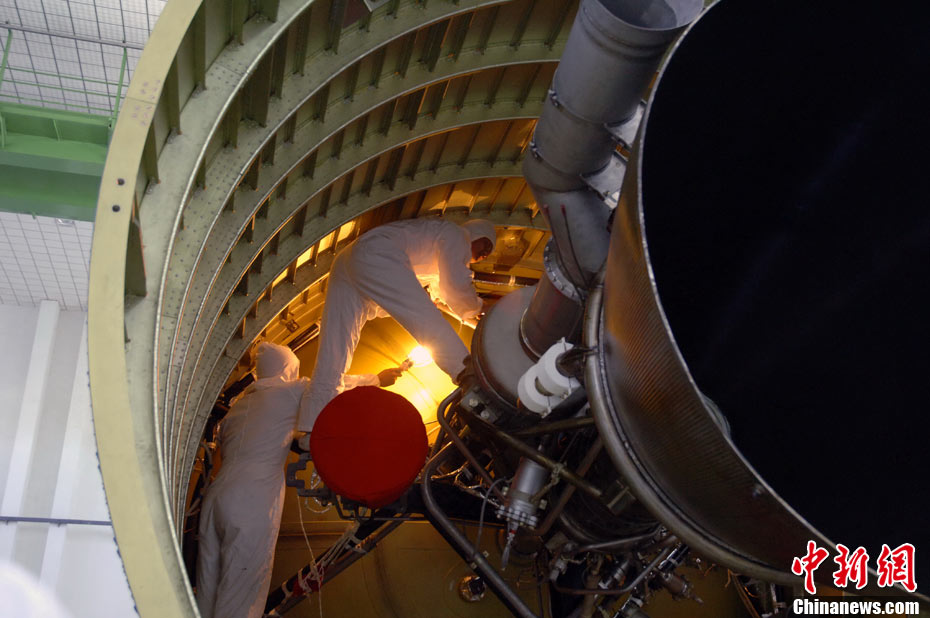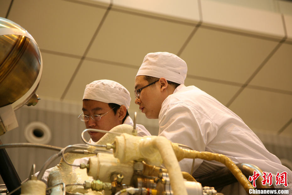 繼嫦娥一號(hào)衛(wèi)星圓滿完成我國首次繞月探測工程之后,嫦娥二號(hào)繞月探測衛(wèi)星作為我國探月工程二期的先行者,又踏上了奔月的征程。圖為科技人員正在做發(fā)動(dòng)機(jī)安裝最后的準(zhǔn)備。圖片來源:中國航天科技集團(tuán)公司
