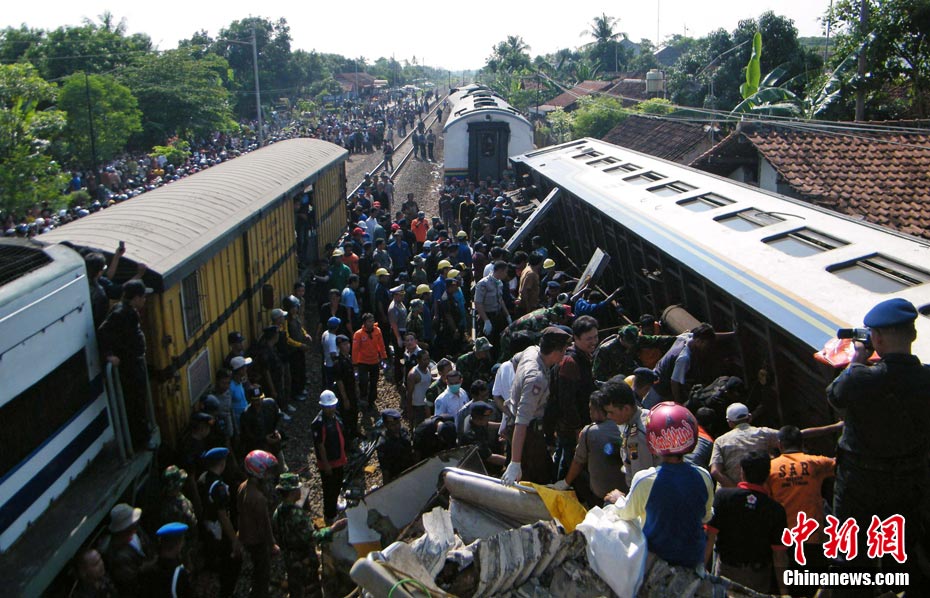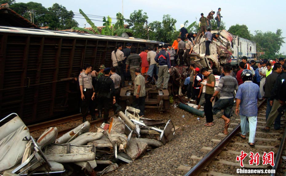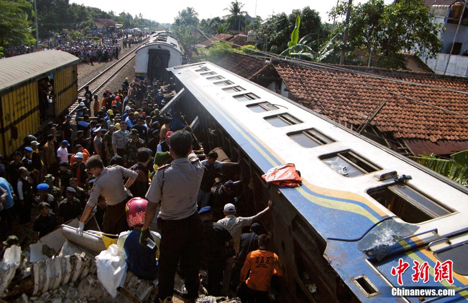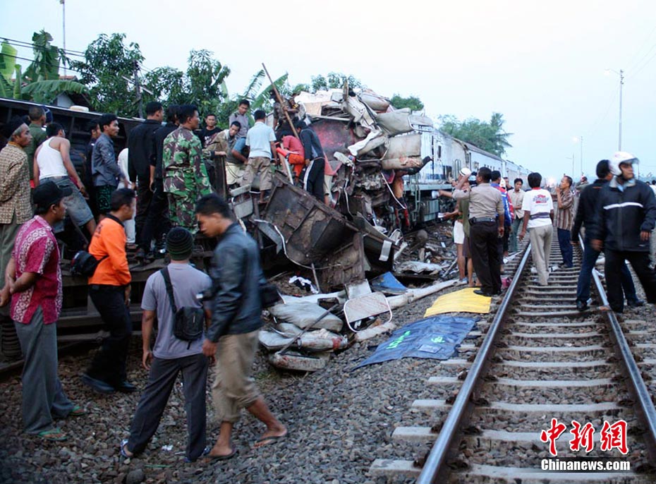 印尼中爪哇省2號發(fā)生火車相撞事故,至少已造成33人死亡。 事發(fā)在中爪哇北岸的珀塔魯坎,一列行駛中的列車,于凌晨約3點鐘,撞向一列停在車站內的列車,當時大部分人都在睡眠中,因此事故造成嚴重傷亡。