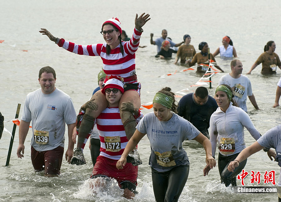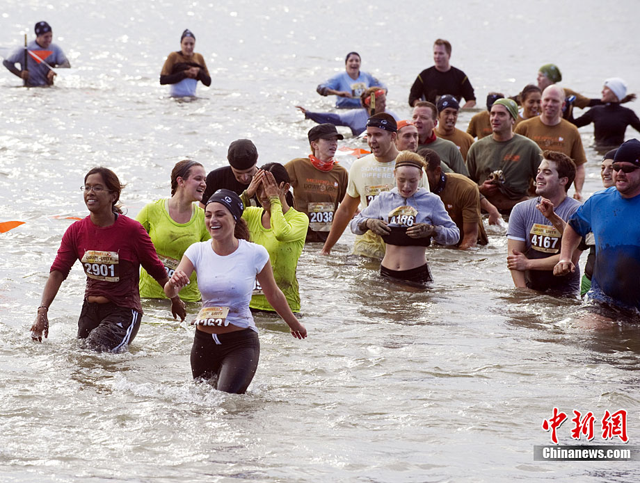 當(dāng)?shù)貢r(shí)間10月3日,數(shù)千名跑步愛(ài)好者參加了在美國(guó)紐約梅里爾島舉行的泥地跑步大賽。參賽者要在長(zhǎng)達(dá)一英里的路程中趟過(guò)泥地、穿過(guò)海灘和各種障礙抵達(dá)終點(diǎn)。