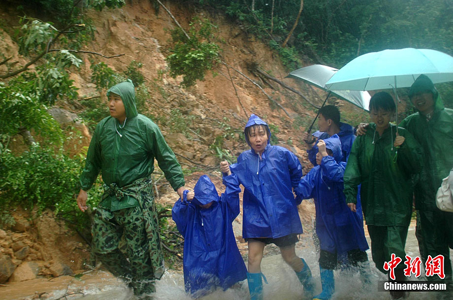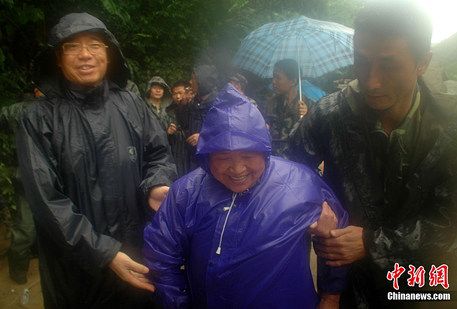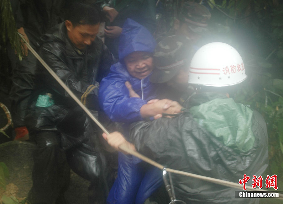 10月4日15時(shí)許,經(jīng)過救援人員近48個(gè)小時(shí)的緊張救援,因山體滑坡被滯留在吊羅山中的125名游客已經(jīng)全部安全轉(zhuǎn)移下山。10月2日下午3時(shí),在海南陵水吊羅山林業(yè)局上山道路約3.5公里處,突發(fā)山體滑坡,海南省政府相關(guān)部門和陵水縣委縣政府全力組織人員實(shí)施救援。圖為今年已經(jīng)88歲的老人許環(huán)渠(音)在救援人員的陪護(hù)下轉(zhuǎn)移。中新社記者 尹海明 攝