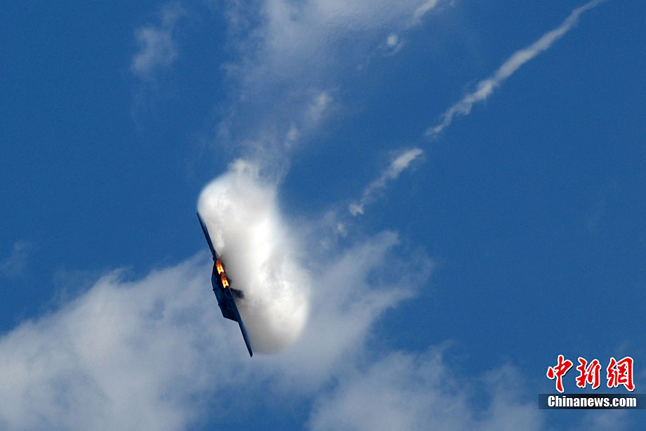 當(dāng)?shù)貢r(shí)間10月3日,美國著名的密拉瑪航空展在加州密拉瑪海軍陸戰(zhàn)隊(duì)航空基地舉行。三天的航空展示和飛行表演吸引了近70萬人次參觀。圖為美軍最先進(jìn)的F-22猛禽戰(zhàn)機(jī)空中英姿。中新社發(fā) 張煒 攝