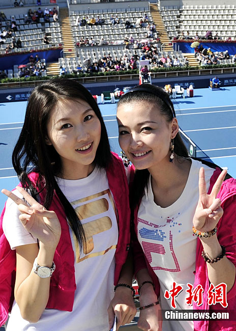 10月4日,時尚中網(wǎng)代言人、第五屆中國職業(yè)模特大賽冠軍趙晨池,首屆亞洲超級模特大賽冠軍王慧在北京亮相時尚運(yùn)動品牌FILA展臺,與現(xiàn)場的球迷朋友們開展了一場別開生面的網(wǎng)球游戲體驗(yàn)活動,助陣FILA及參與本屆中網(wǎng)的FILA四位代言人。中新社記者 錢興強(qiáng) 攝