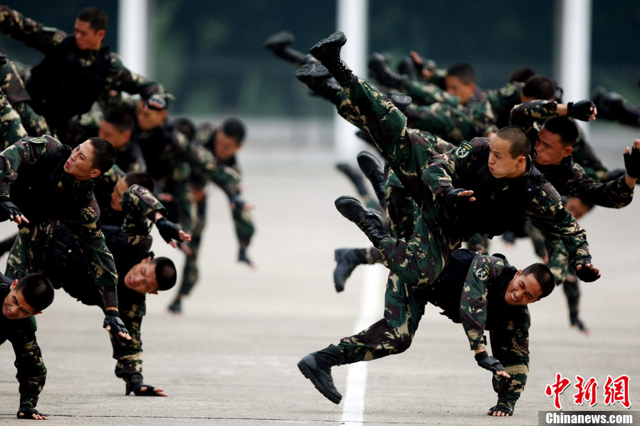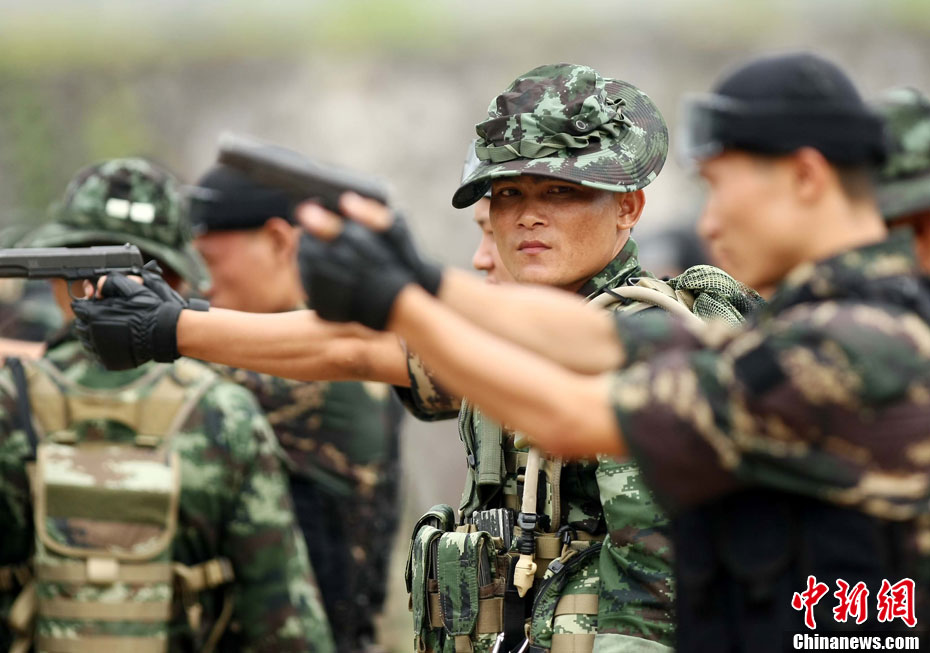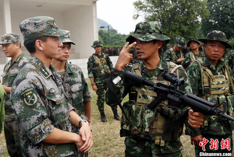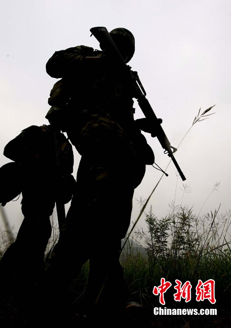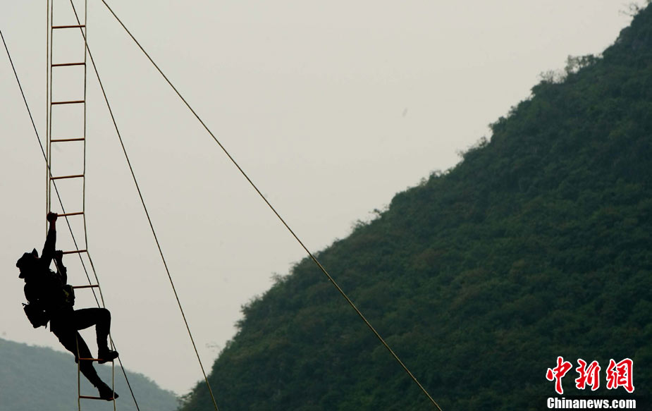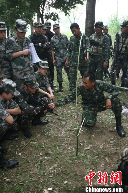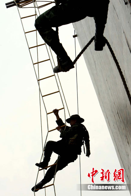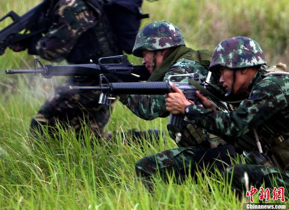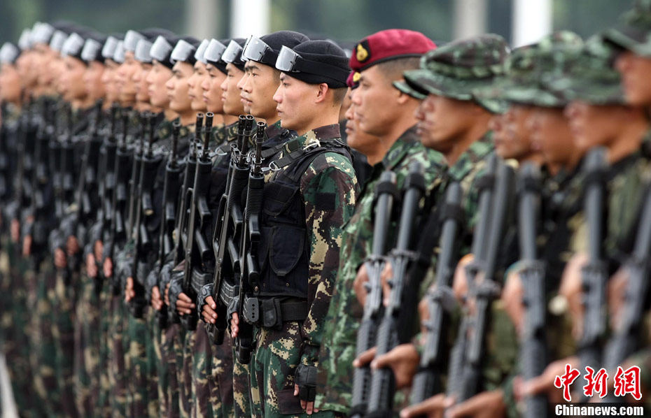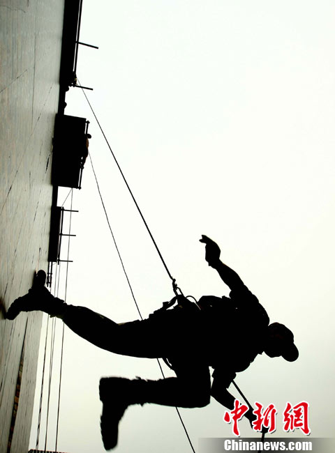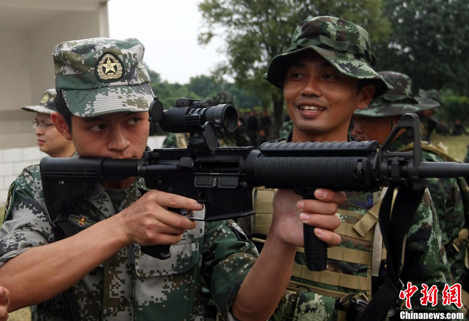 10月8日,中國(guó)、泰國(guó)兩軍特種部隊(duì)“突擊—2010”反恐聯(lián)合訓(xùn)練在廣西桂林拉開帷幕,這是兩國(guó)之間舉行的第三次陸軍聯(lián)合訓(xùn)練。分析人士指出,這次聯(lián)訓(xùn)將進(jìn)一步鞏固兩軍關(guān)系,提高聯(lián)合反恐作戰(zhàn)能力,利于維護(hù)地區(qū)和平穩(wěn)定。此次聯(lián)訓(xùn)為期15天,這是中泰兩國(guó)陸軍首次就城市反恐課題開展聯(lián)訓(xùn)。圖為中國(guó)參訓(xùn)部隊(duì)在開幕式上表演房屋突擊。中新社記者 杜洋 攝