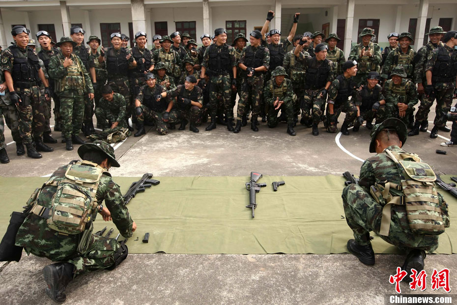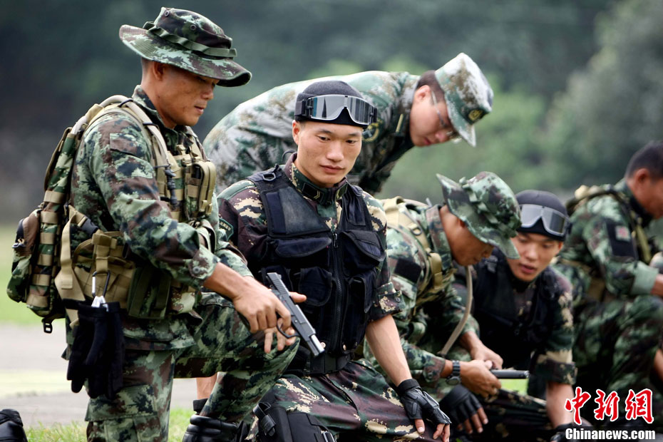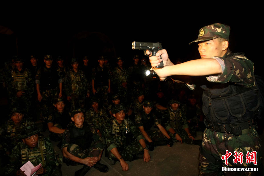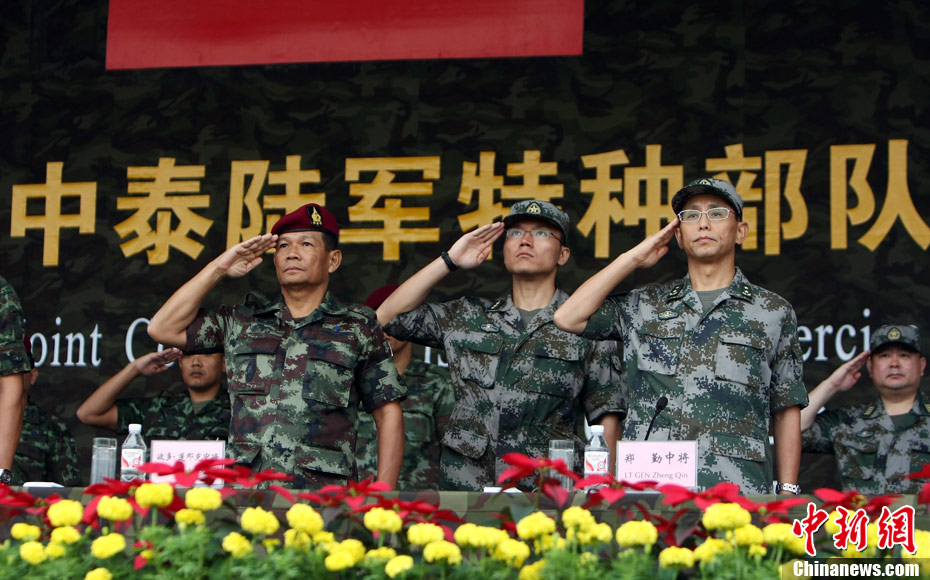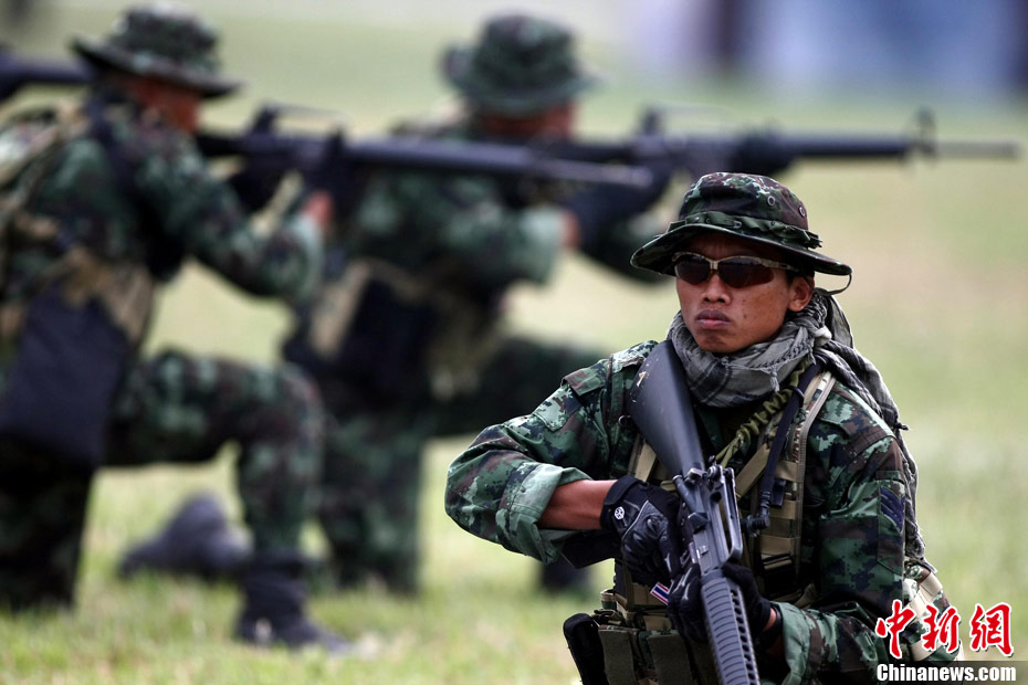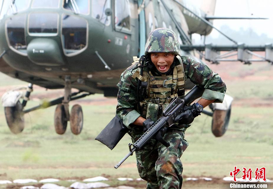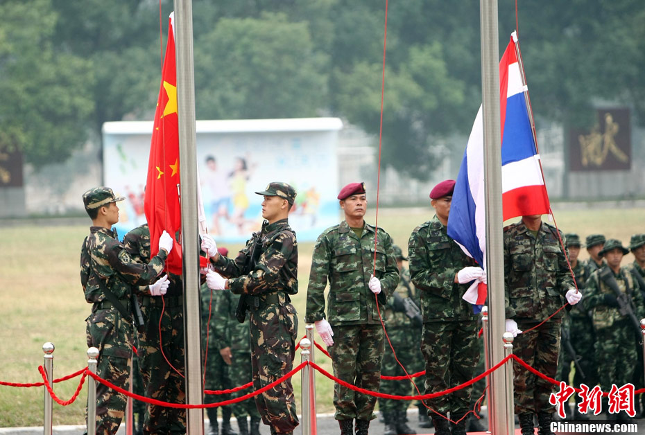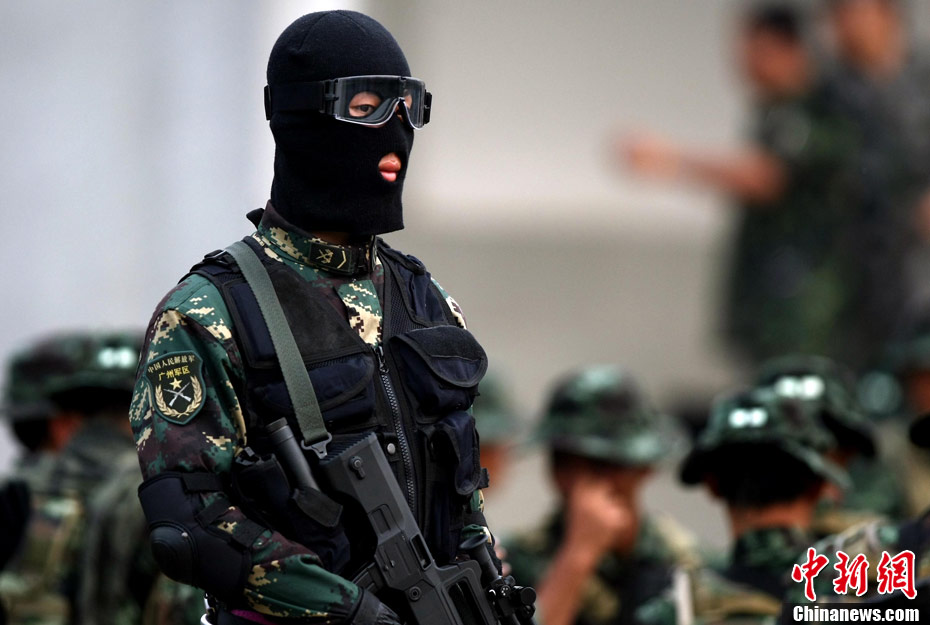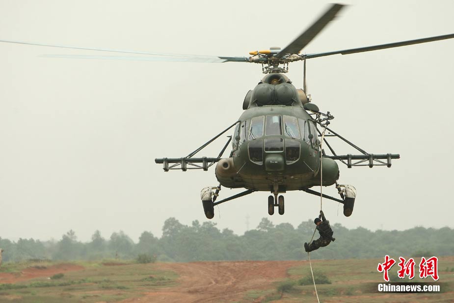 10月8日,中國(guó)、泰國(guó)兩軍特種部隊(duì)“突擊—2010”反恐聯(lián)合訓(xùn)練在廣西桂林拉開帷幕,這是兩國(guó)之間舉行的第三次陸軍聯(lián)合訓(xùn)練。分析人士指出,這次聯(lián)訓(xùn)將進(jìn)一步鞏固兩軍關(guān)系,提高聯(lián)合反恐作戰(zhàn)能力,利于維護(hù)地區(qū)和平穩(wěn)定。此次聯(lián)訓(xùn)為期15天,這是中泰兩國(guó)陸軍首次就城市反恐課題開展聯(lián)訓(xùn)。圖為中國(guó)參訓(xùn)部隊(duì)在開幕式上表演房屋突擊。中新社記者 杜洋 攝
