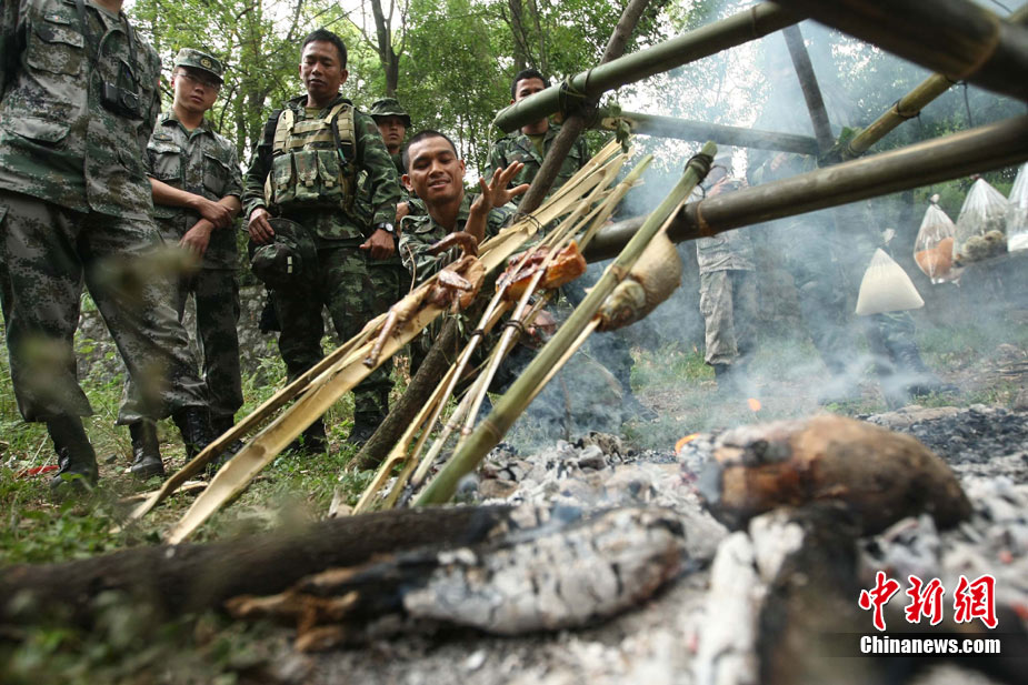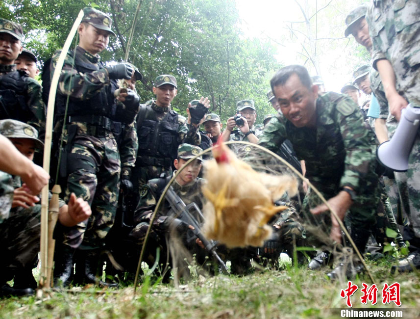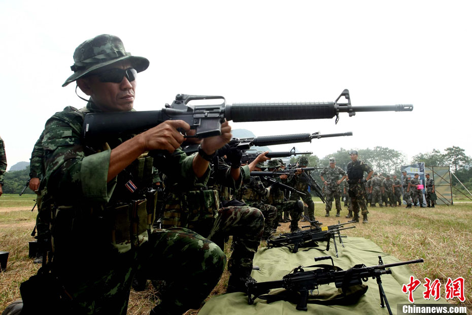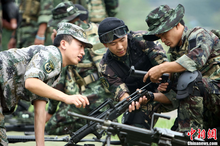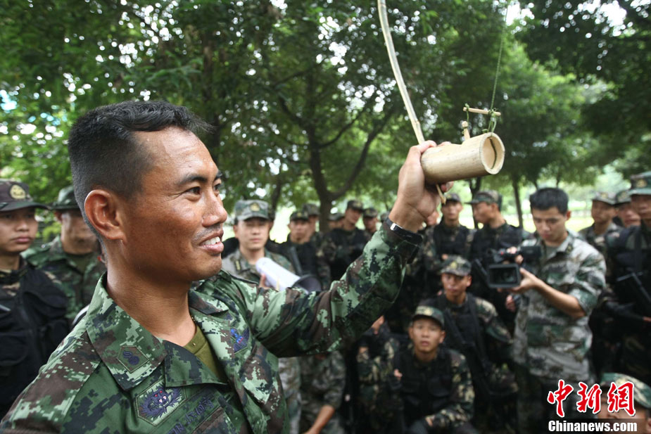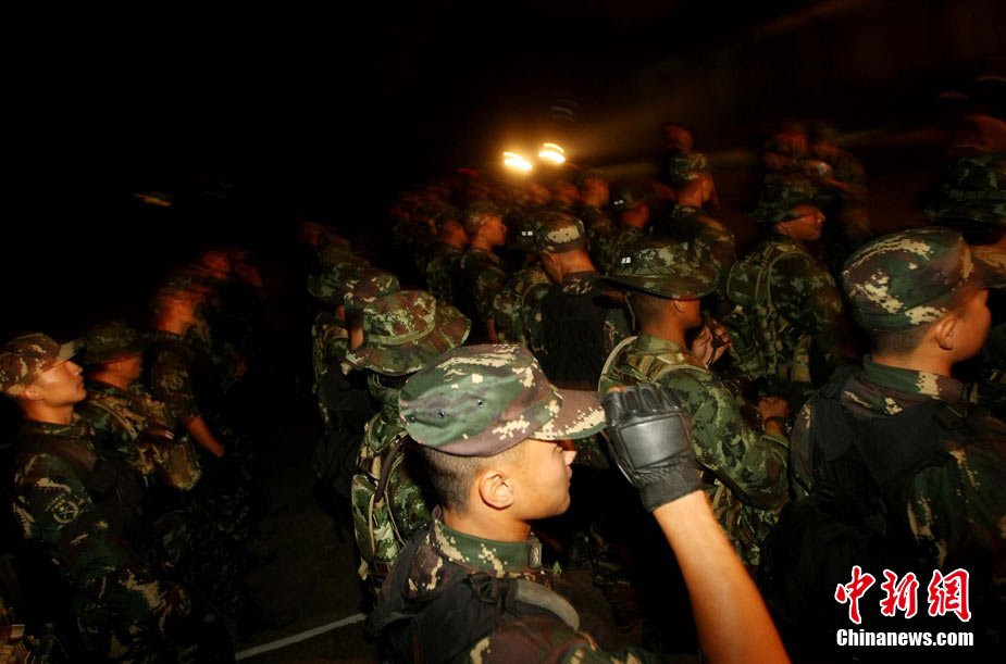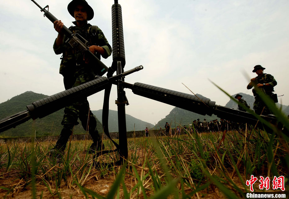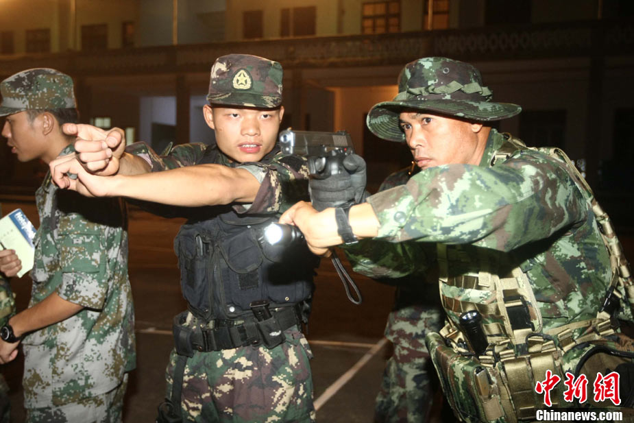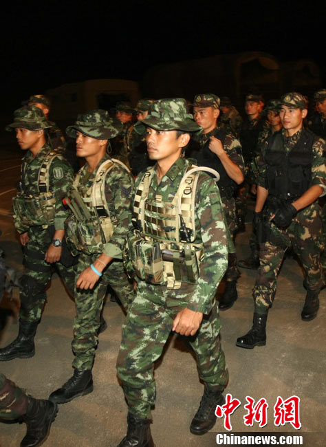 10月8日,中國(guó)、泰國(guó)兩軍特種部隊(duì)“突擊—2010”反恐聯(lián)合訓(xùn)練在廣西桂林拉開帷幕,這是兩國(guó)之間舉行的第三次陸軍聯(lián)合訓(xùn)練。分析人士指出,這次聯(lián)訓(xùn)將進(jìn)一步鞏固兩軍關(guān)系,提高聯(lián)合反恐作戰(zhàn)能力,利于維護(hù)地區(qū)和平穩(wěn)定。此次聯(lián)訓(xùn)為期15天,這是中泰兩國(guó)陸軍首次就城市反恐課題開展聯(lián)訓(xùn)。圖為中國(guó)參訓(xùn)部隊(duì)在開幕式上表演房屋突擊。中新社記者 杜洋 攝