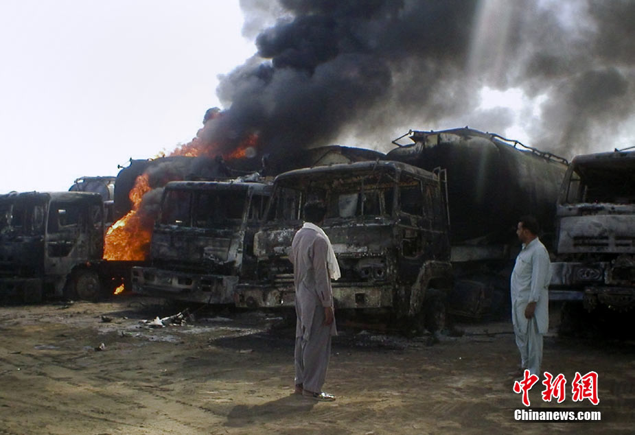 10月9日,北約一個(gè)運(yùn)輸車(chē)隊(duì)在巴基斯坦西南部俾路支省首府奎達(dá)東南約200公里處遭到武裝分子襲擊,至少29輛油罐車(chē)被燒毀。