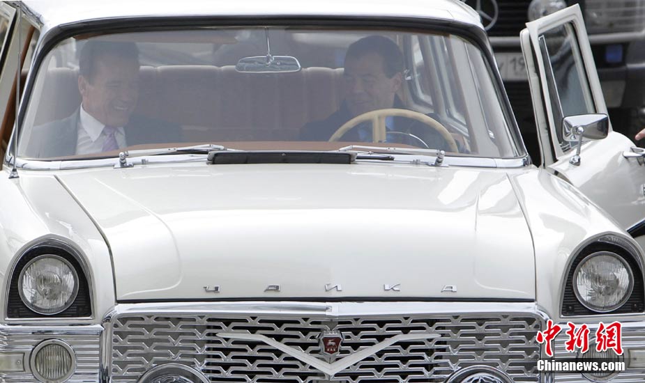 俄總統(tǒng)與施瓦辛格會面 為“硬漢”當(dāng)司機(jī)