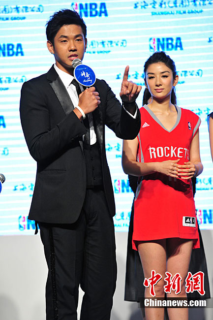 10月12日,上海電影集團(tuán)聯(lián)手美國職業(yè)籃球協(xié)會(huì)(NBA)在京召開發(fā)布會(huì),共同揭曉首部本土制作的NBA題材電影《神奇Amazing》的全明星陣容,六屆NBA冠軍得主科特·皮蓬、中國著名籃球明星易建聯(lián)、NBA全明星球員效力于奧蘭多魔術(shù)隊(duì)的德懷特·霍華德、丹佛掘金隊(duì)的卡梅羅·安東尼、現(xiàn)中國男子籃球隊(duì)球員王治郅等多名籃球明星,以及來自兩岸三地的人氣明星黃曉明、馮德倫、陳建州(黑人)、黃奕,以及韓國女星金雅中,美國男星埃里克·馬布斯將聯(lián)手出演影片。圖為在片中飾演拉拉隊(duì)長(zhǎng)的黃奕身著鮮紅色火箭隊(duì)姚明11號(hào)球衣驚艷亮相。中新社記者 李學(xué)仕 攝