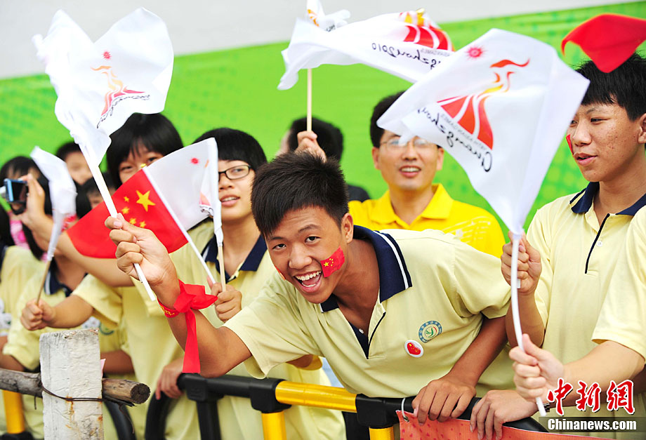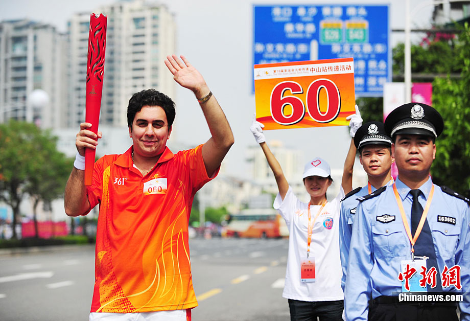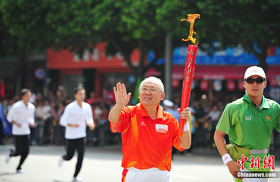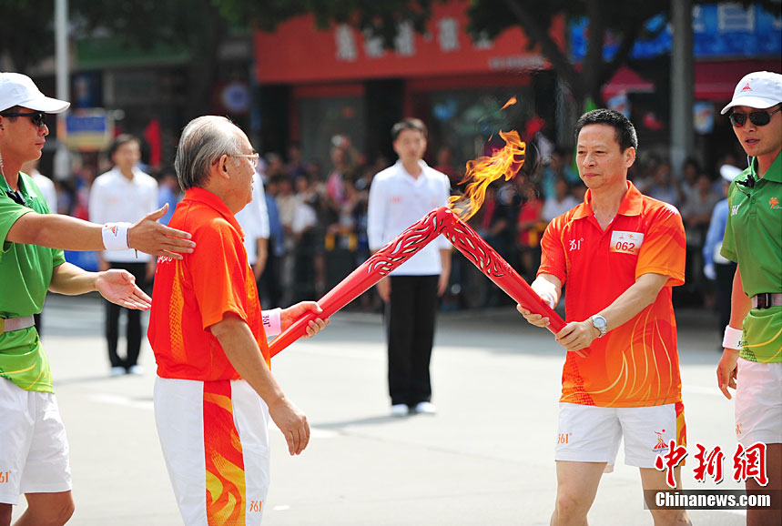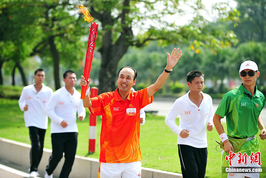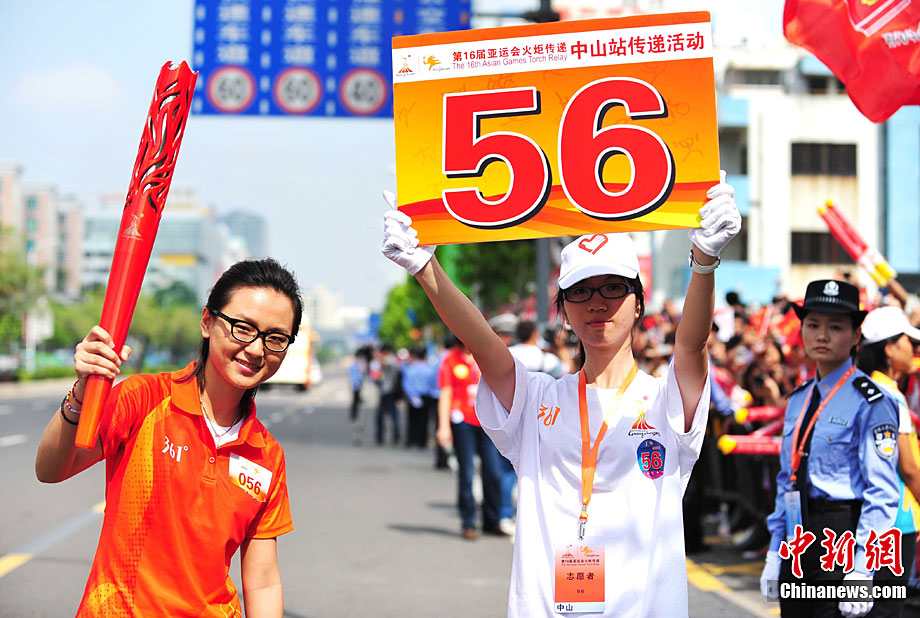 10月13日,備受矚目的第16屆廣州亞運(yùn)會(huì)火炬?zhèn)鬟f在廣東省中山市舉行;鹁?zhèn)鬟f從孫文紀(jì)念公園出發(fā),火炬手有科學(xué)家、音樂家、漫畫家、美術(shù)家、企業(yè)家等80名火炬手接力,全長(zhǎng)11.2公里。中新社記者 陳文 攝