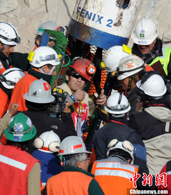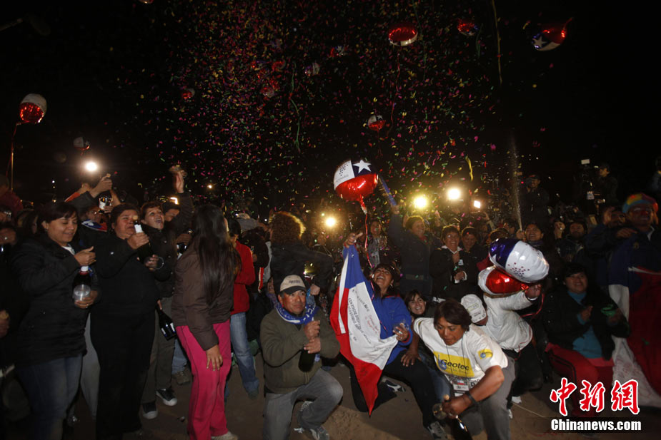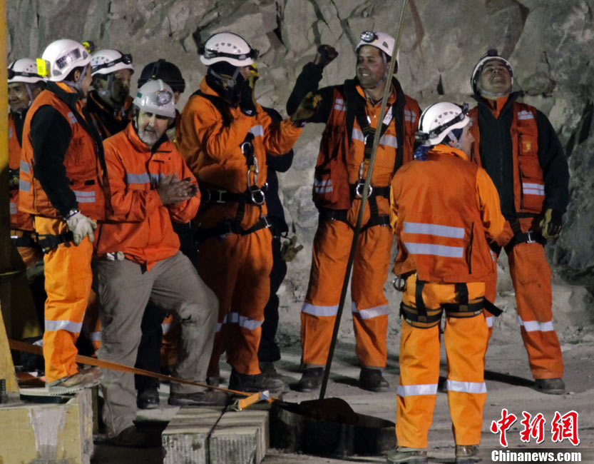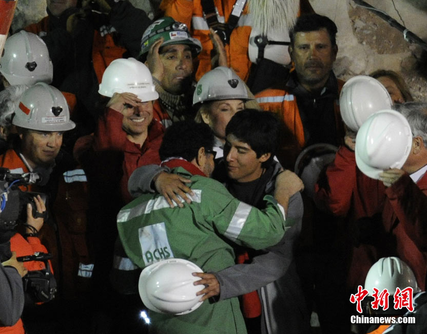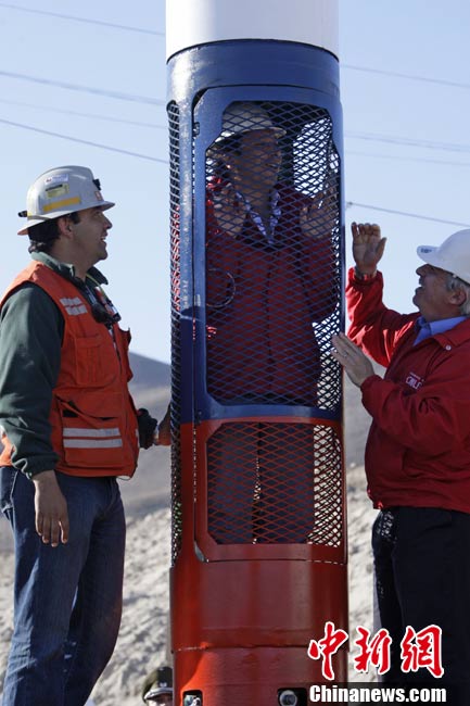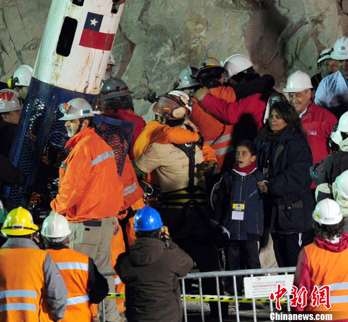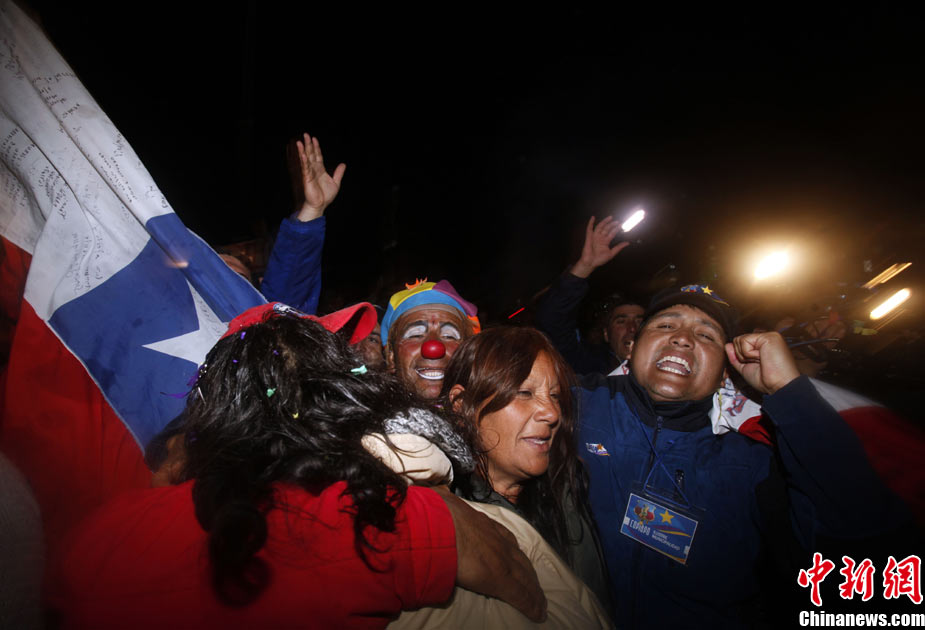 10月14日,智利總統(tǒng)皮涅拉會(huì)見了所有33名圣何塞銅礦獲救的被困礦工。33位在礦井下被困兩個(gè)多月的礦工周三被全部救出。據(jù)醫(yī)生說,這些獲救礦工的大多數(shù)健康狀況良好。