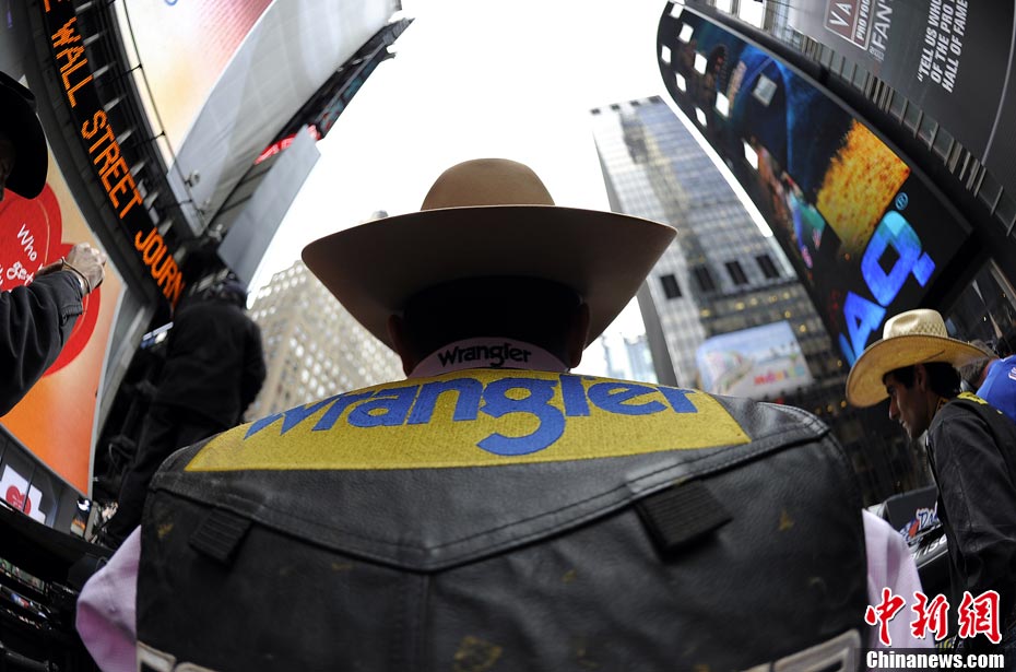 當(dāng)?shù)貢r(shí)間10月15日,10名美國職業(yè)騎牛大賽的頂尖選手在紐約時(shí)報(bào)廣場上演了一場精彩的騎牛大賽,為將于10月20日至24日在美國拉斯維加斯舉行的2010職業(yè)騎?倹Q賽造勢。