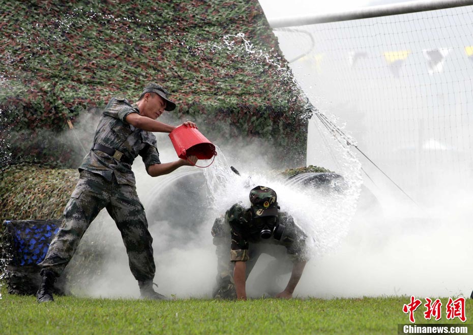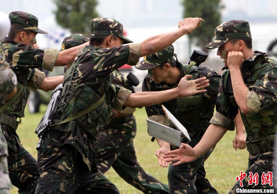 10月16日,中國(guó)人民解放軍駐港部隊(duì)特種兵在香港昂船洲海軍基地進(jìn)行“獵人戰(zhàn)斗”演練,展示過硬的搏擊功夫。當(dāng)天,駐軍與香港各大院校大學(xué)生聯(lián)誼活動(dòng),以各種形式相互交流,增進(jìn)香港學(xué)生對(duì)國(guó)家的了解。 中新社發(fā) 洪少葵 攝