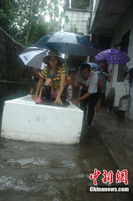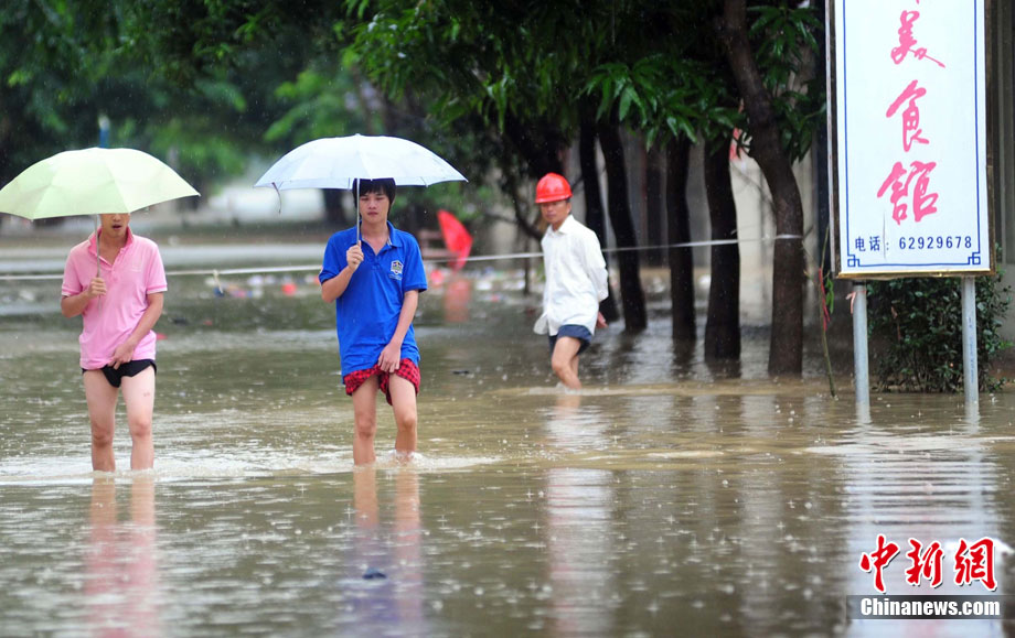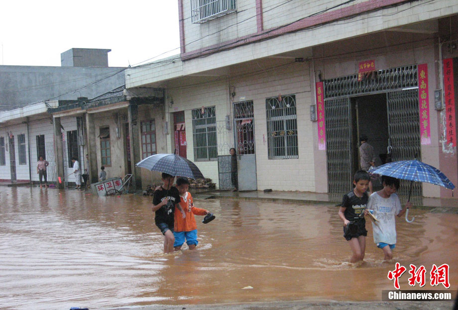 10月16日9時(shí),受持續(xù)強(qiáng)降雨影響,瓊海市牛路嶺水庫最高水位達(dá)105.16米,超過防洪限制水位105米,牛路嶺水庫水電站打開7個(gè)閘門,以每秒3000立方米流量泄洪到萬泉河。當(dāng)日上午,瓊海市政府緊急將萬泉河沿岸7鄉(xiāng)鎮(zhèn)群眾緊急轉(zhuǎn)移。中新社發(fā) 付美斌 攝