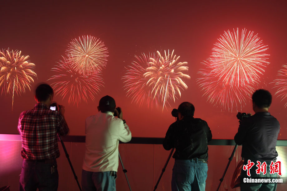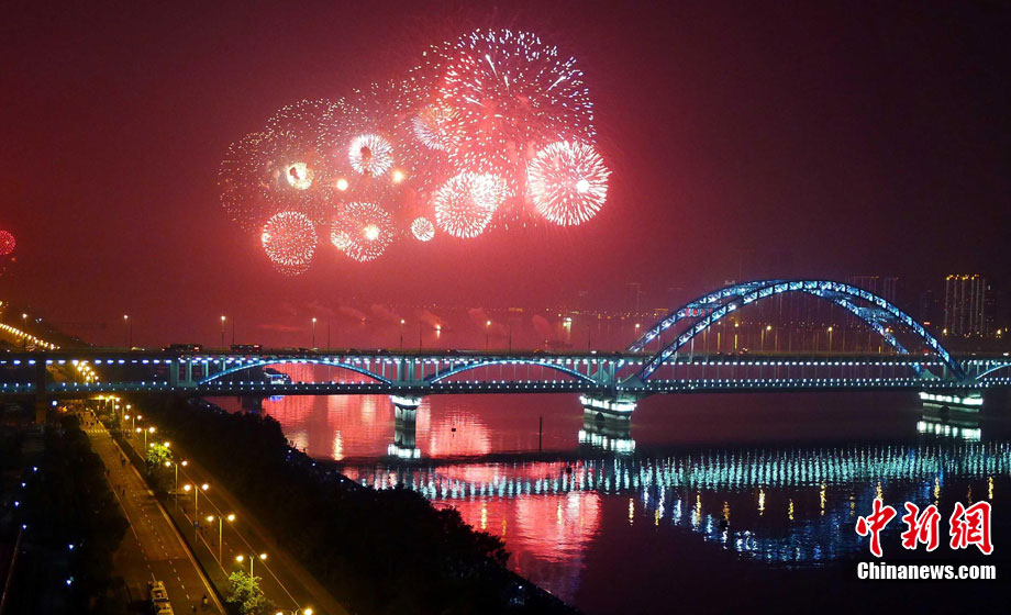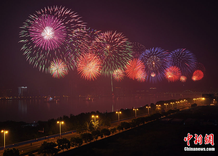 10月16日,作為2010杭州國際煙花大會分會場,璀璨旖旎的煙花再次在運河上空綻放。16萬發(fā)煙花持續(xù)近40分鐘的燃放再次點亮千年運河的夜空,上演一場夢幻般的視覺盛宴。中新社發(fā) 夏毅 攝
