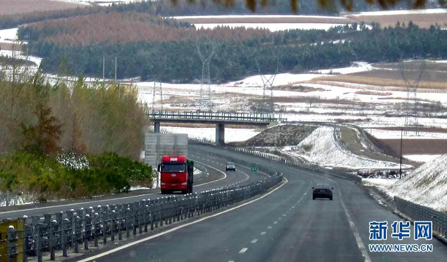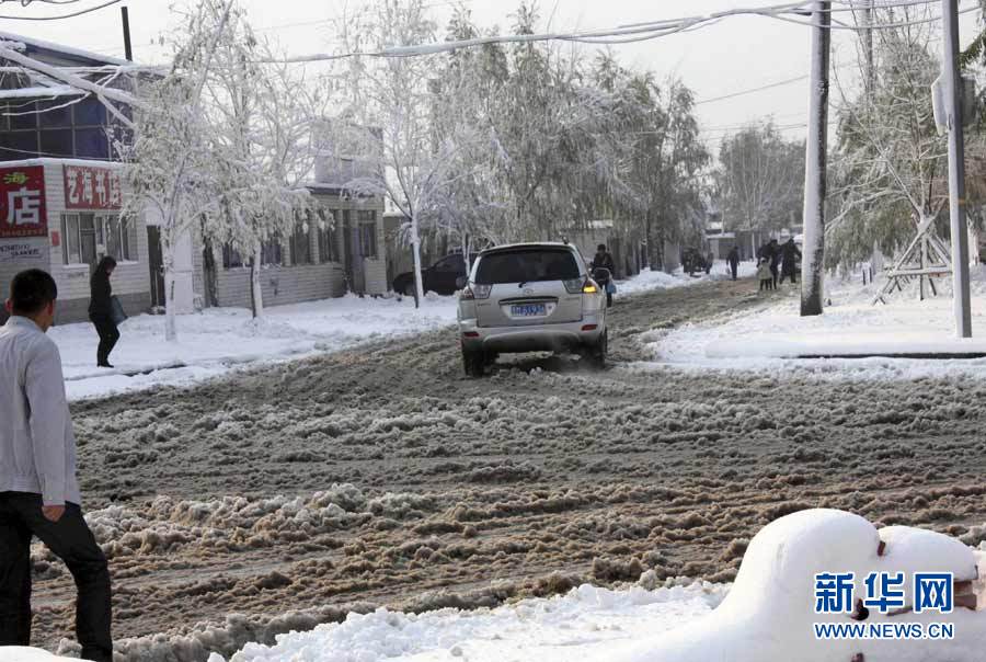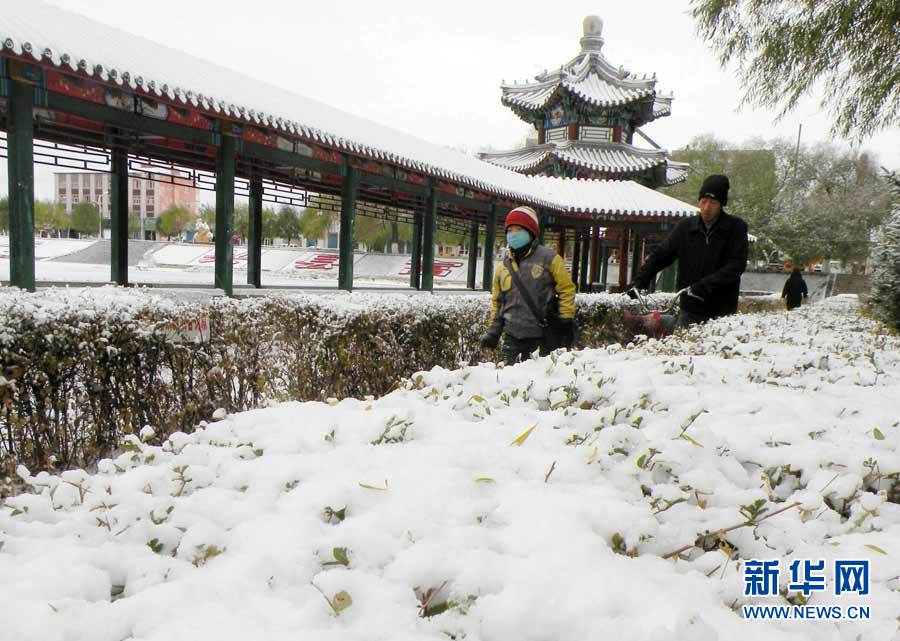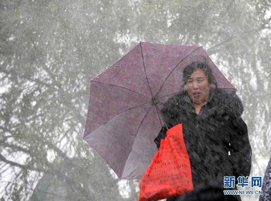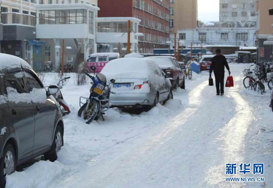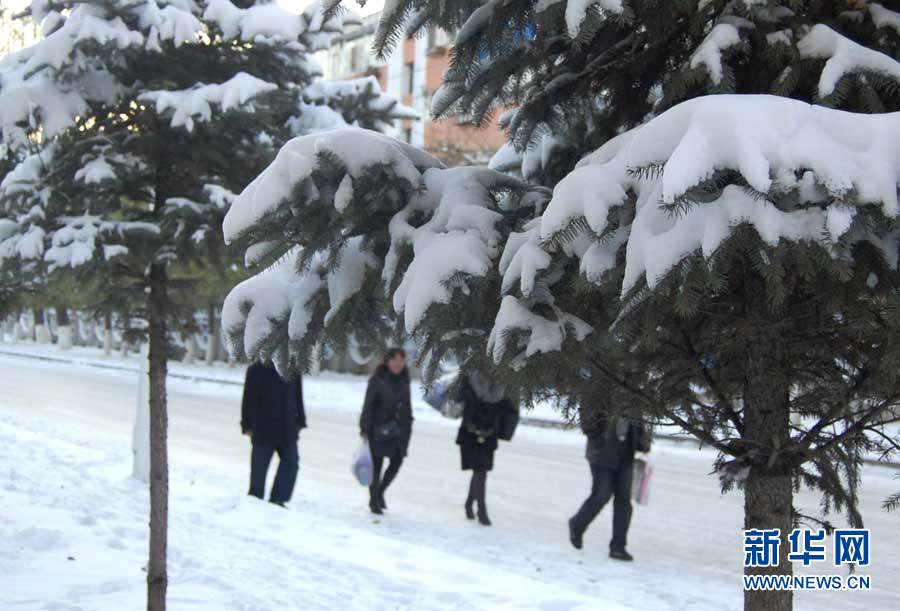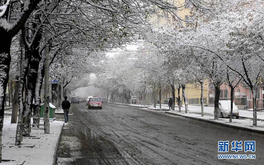 中央氣象臺近日發(fā)布消息,受3股冷空氣影響,新疆、西藏、青海、甘肅、黑龍江和內(nèi)蒙古等9省區(qū)入冬在即。圖為10月16日,黑龍江省七臺河市降雪,市民打著傘冒雪出行。秦存廣 攝 圖片來源:新華網(wǎng)