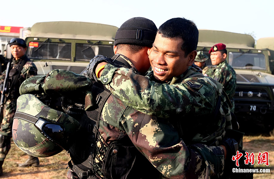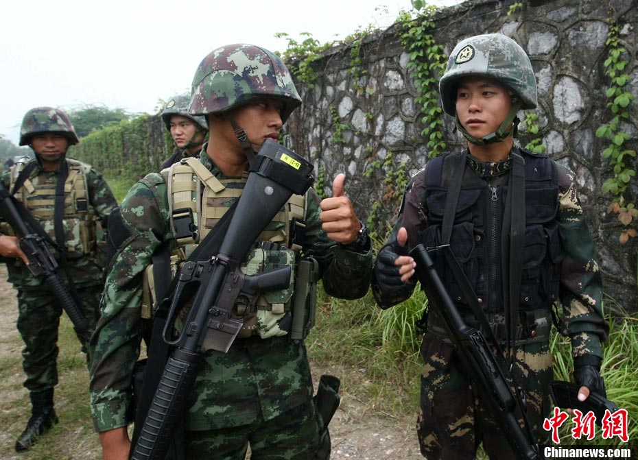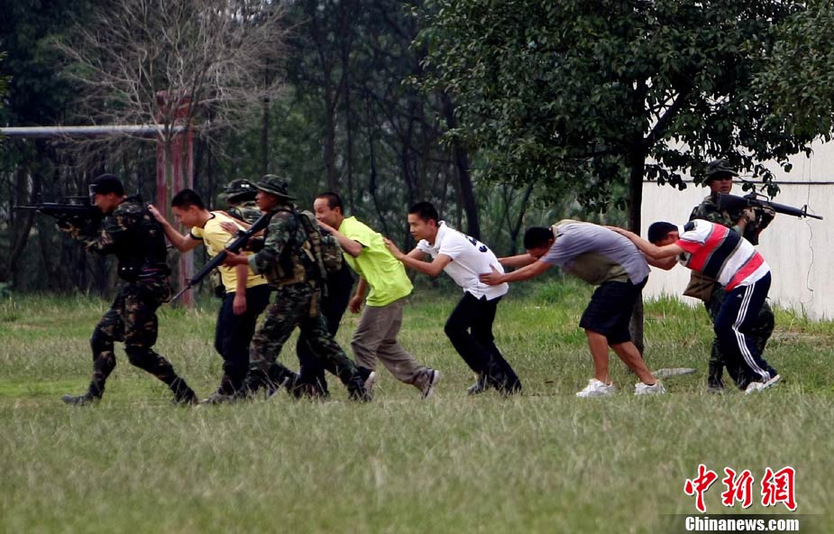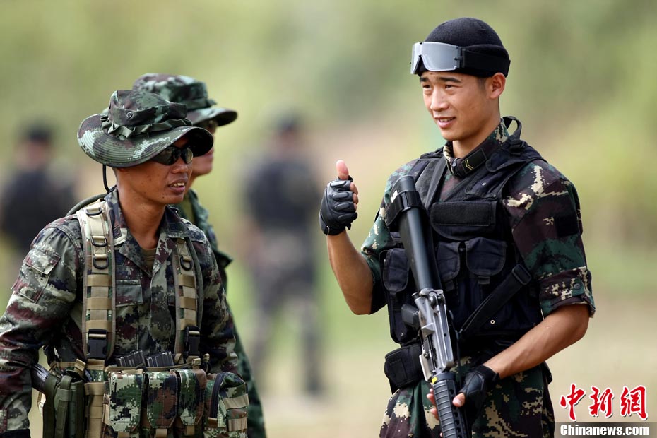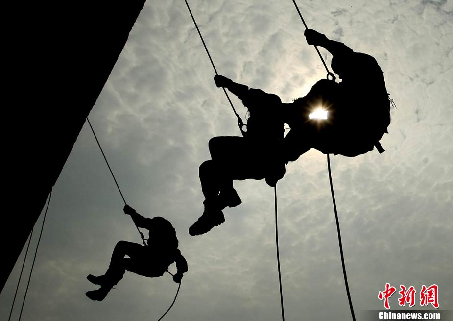 10月19日,“突擊-2010”中泰反恐聯(lián)訓(xùn)在廣州軍區(qū)“紅嶺”合同戰(zhàn)術(shù)訓(xùn)練基地舉行“獵鼬”行動實兵綜合演練,圍繞“城市聯(lián)合反恐行動”這一課題,演練了快速封鎖、偵搜排查、隔離疏散、立體突擊4個行動。演練模擬一名為“臭鼬”的國際恐怖組織在泰國制造暴力恐怖活動后,秘密潛入中國G市紅嶺小區(qū),企圖在XX地區(qū)領(lǐng)導(dǎo)人峰會期間繼續(xù)制造恐怖事件,干擾峰會順利進行。中泰兩國政府依據(jù)聯(lián)合反恐協(xié)議,決定成立聯(lián)合指揮機構(gòu),抽調(diào)特種部隊精銳力量組成“獵鼬突擊隊”,共同進行反恐作戰(zhàn)任務(wù)。 中新社記者 杜洋 攝