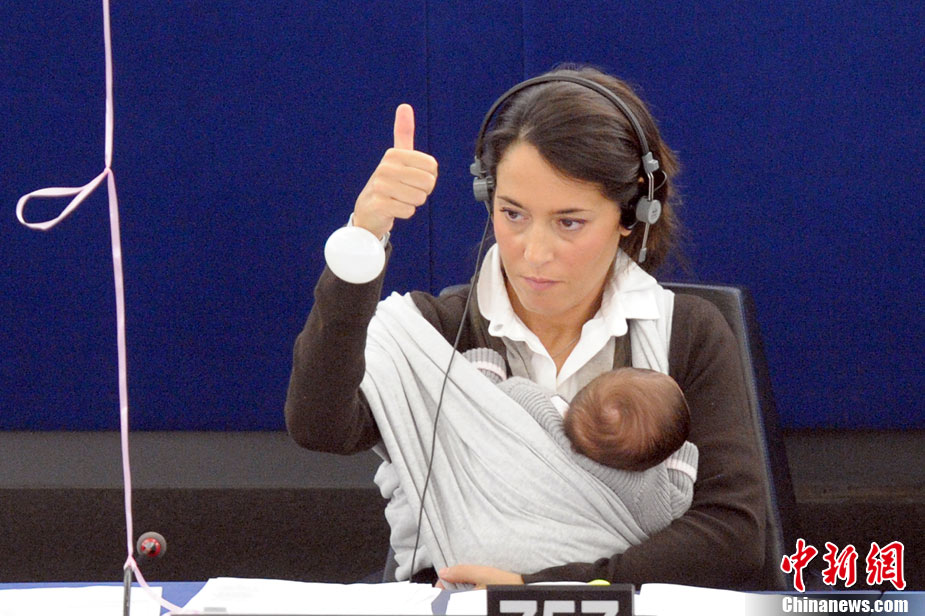 歐洲議會(huì)女議員懷抱孩子出席會(huì)議