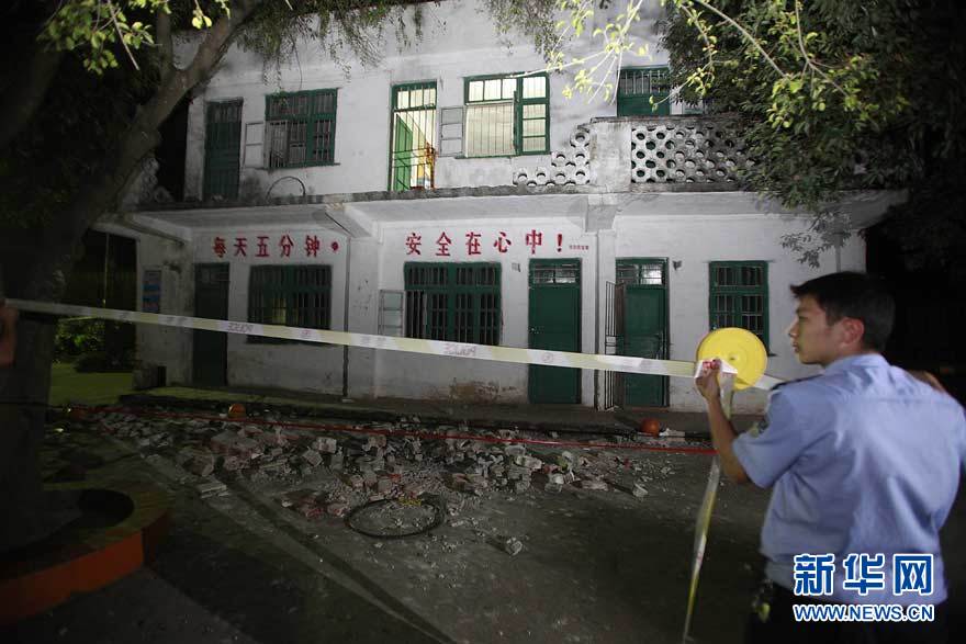 10月21日,警方在發(fā)生護(hù)欄坍塌事故的教學(xué)樓外拉起警戒線。當(dāng)日下午4時(shí)40分左右,廣西柳江縣洛滿鎮(zhèn)洛滿中心小學(xué)一棟兩層教學(xué)樓二樓走廊護(hù)欄發(fā)生坍塌事故。截至21日晚9時(shí),共有27名學(xué)生墜落不同程度受傷,4人傷勢(shì)較嚴(yán)重。