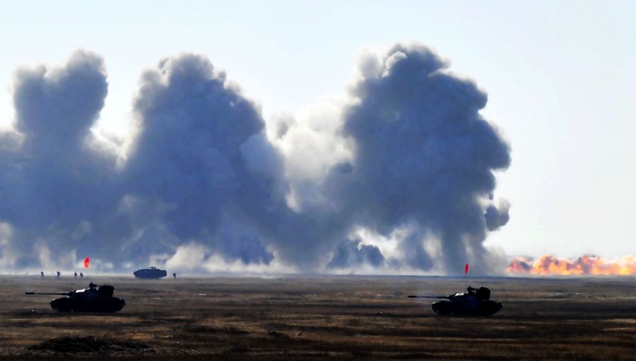 與此同時,某師偵察分隊乘坐沖鋒舟對渡口兩岸展開嚴密搜索警戒,隱蔽于河岸灘頭的防空兵群迅即構(gòu)建防空天網(wǎng)。河面上,沖鋒舟如蛟龍般來回穿梭,不斷施放防“敵”空中偵察的煙幕彈。很快,江面煙霧滾滾,將緊張的架橋場面遮掩得嚴嚴實實。劉永華/朱映濤 圖片來源:中國軍網(wǎng)