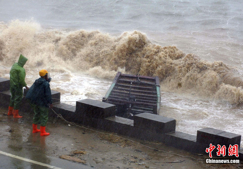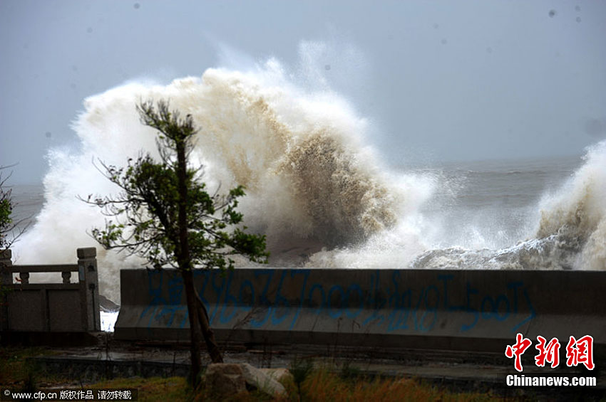 10月23日12時(shí)55分,今年第13號臺風(fēng)“鲇魚”在福建省漳浦縣六鰲鎮(zhèn)登陸,登陸時(shí)近中心最大風(fēng)力13級(風(fēng)速38米/秒),未來將向北偏西方向移動(dòng),強(qiáng)度逐漸減弱。圖片來源:CFP視覺中國 林良標(biāo) 攝