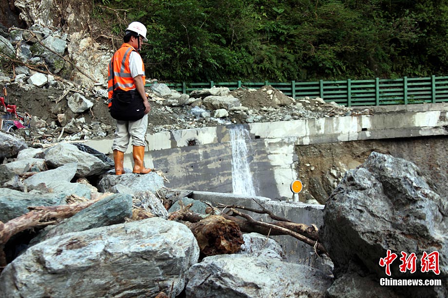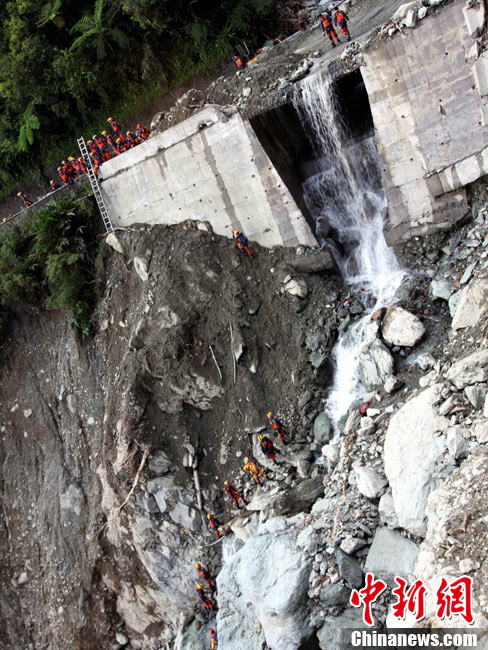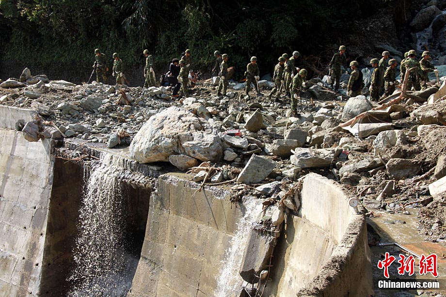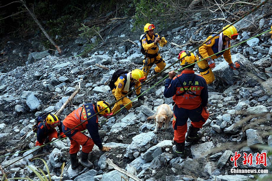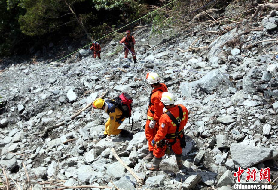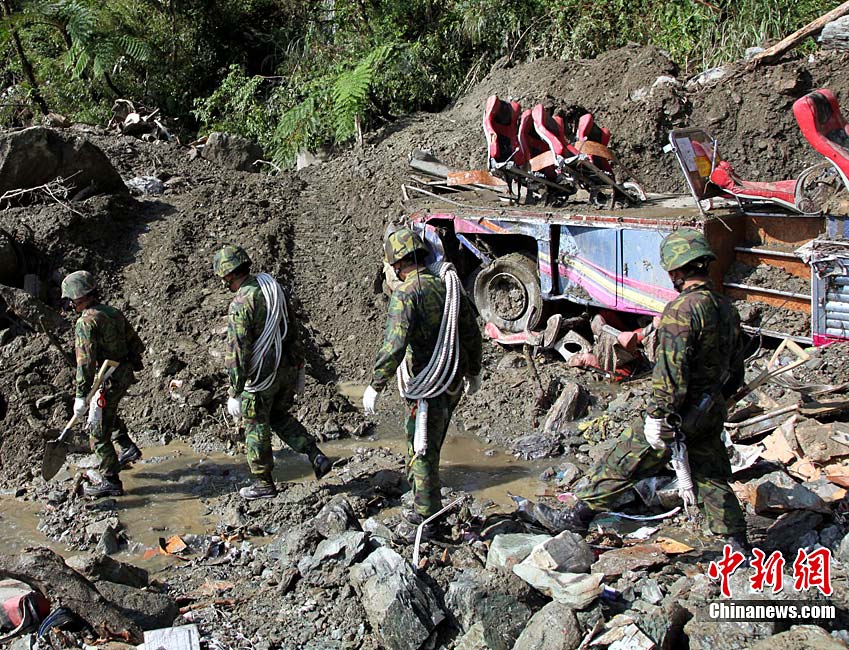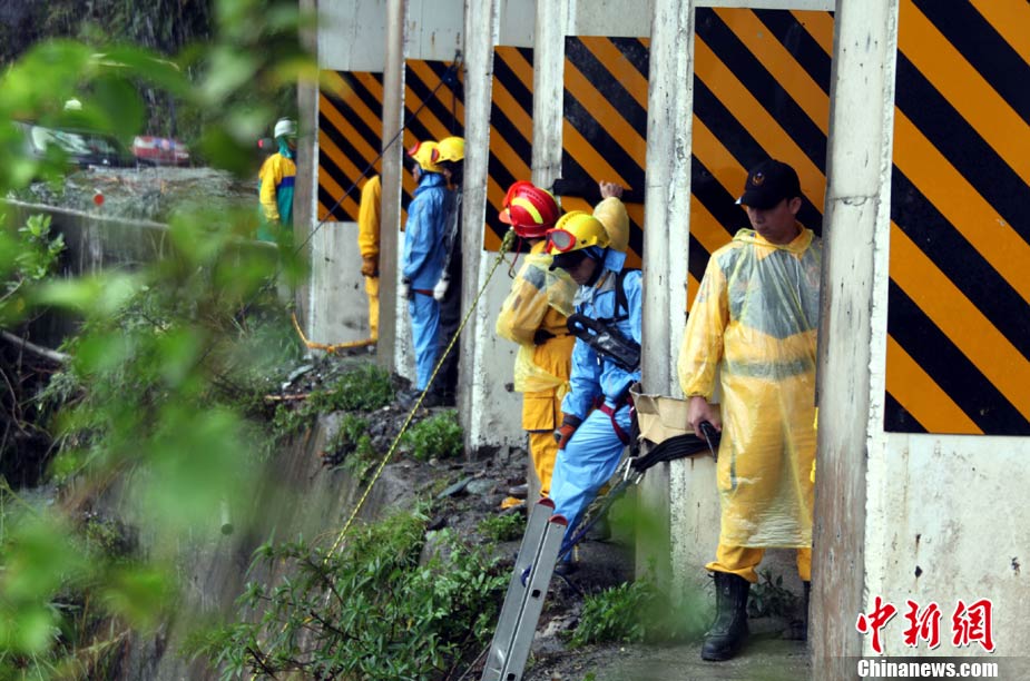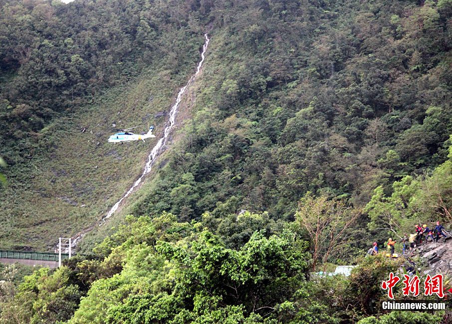臺灣蘇花公路塌方事故已逾5天,事故發(fā)生的宜蘭縣一帶26日持續(xù)大雨。然而對失蹤者(包括18名大陸游客和2名大陸領隊)的海陸空三路搜索仍在持續(xù)。現(xiàn)場搜索進展艱難,其間并發(fā)生一名搜救隊員被砸傷的情況。 中新社記者 王健 攝