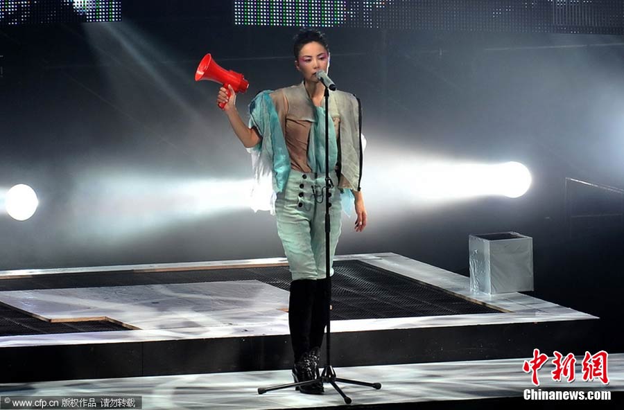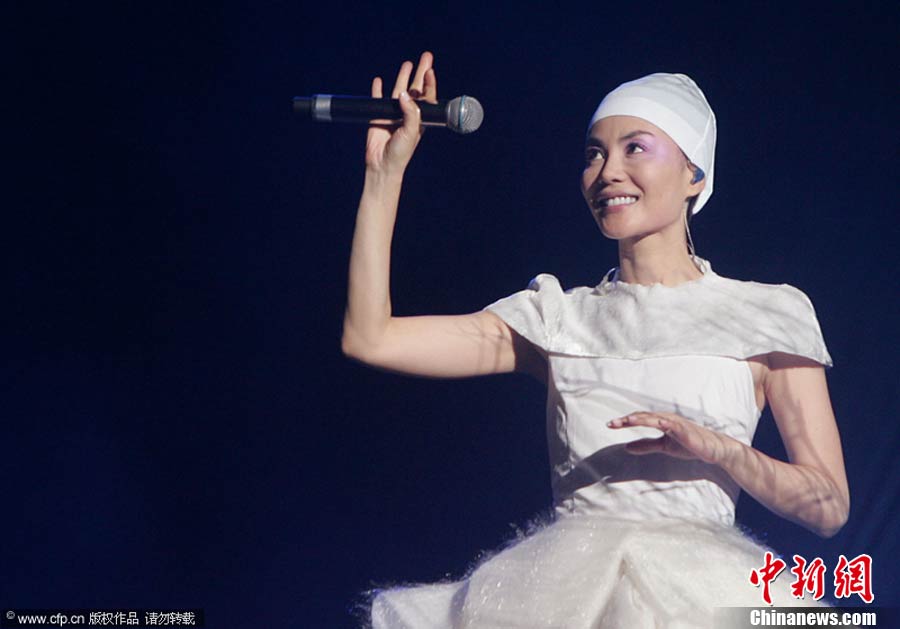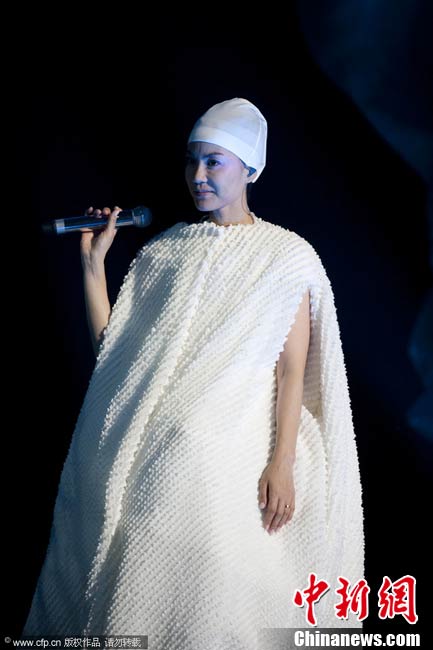 10月29日晚,暌違六年,華語樂壇天后級人物王菲在自己的家鄉(xiāng)——北京,再次開嗓,為歌迷奉獻(xiàn)出一場精彩絕倫的演唱會。整場演出,王菲在造型上十分搶眼,不論最開始的一身雪白,脫去外套后的蓬蓬裙顯得清新脫俗,或是中間段的摩登女郎裝扮、騎士裝、拖地長禮服,都令她展現(xiàn)不同韻味。圖片來源:CFP視覺中國