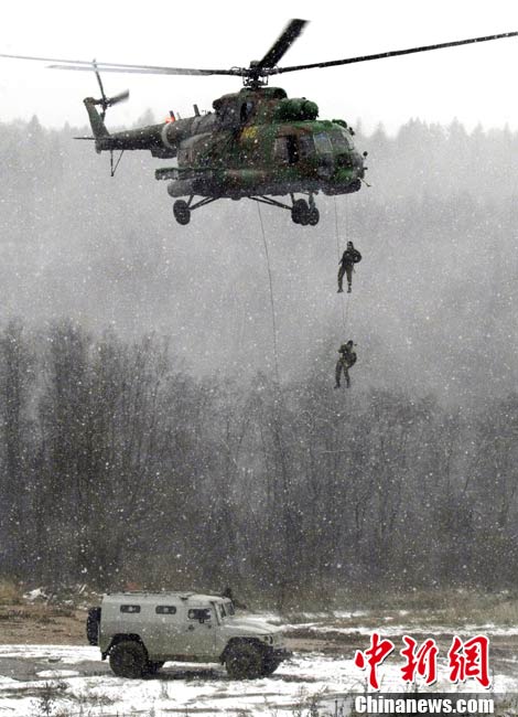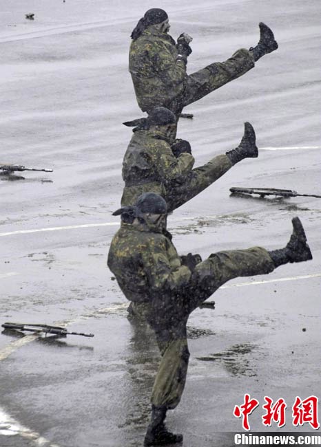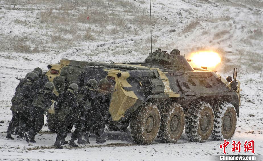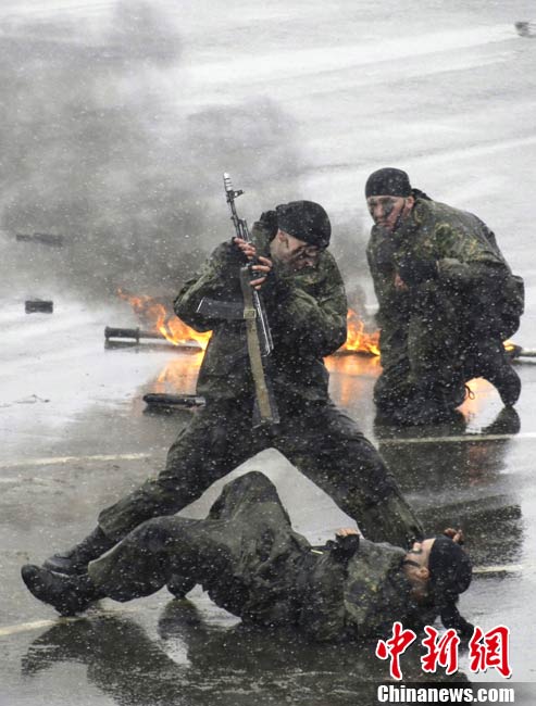 俄羅斯特警冒雪進行戰(zhàn)術示范演練