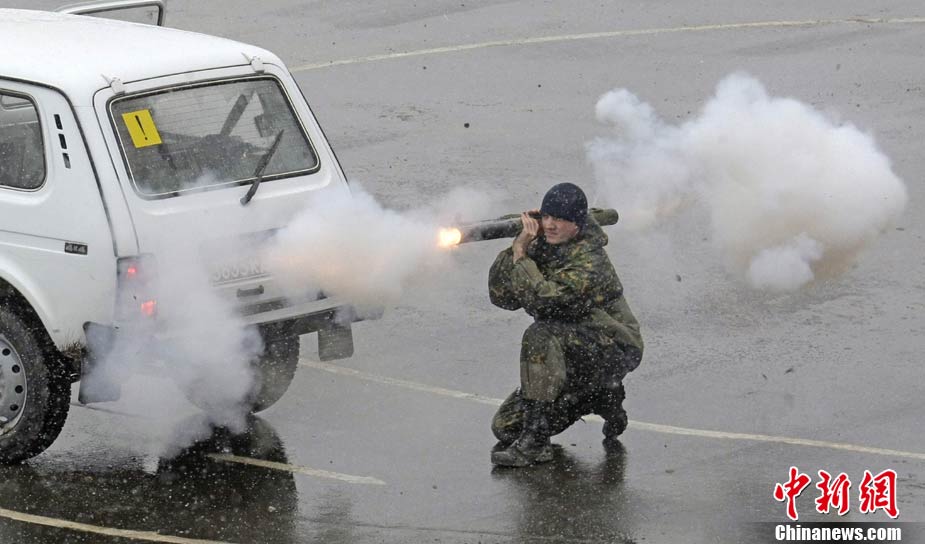 10月29日,俄羅斯莫斯科郊區(qū),俄羅斯特警在Interpolitex-2010國際警察與防務技術展上進行示范戰(zhàn)術演練。
