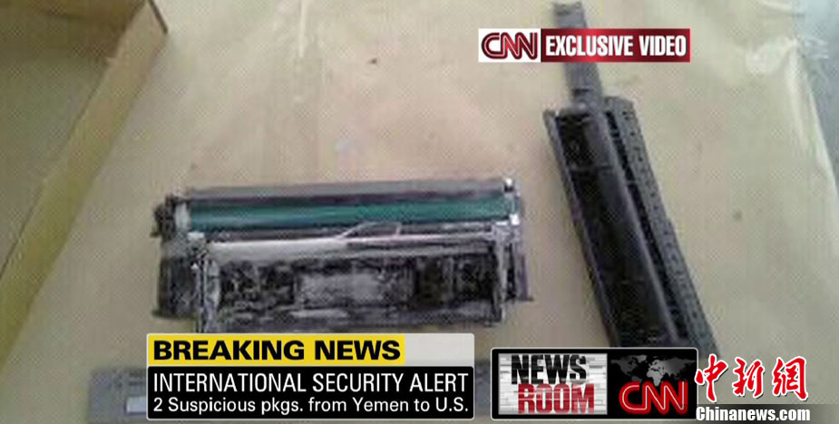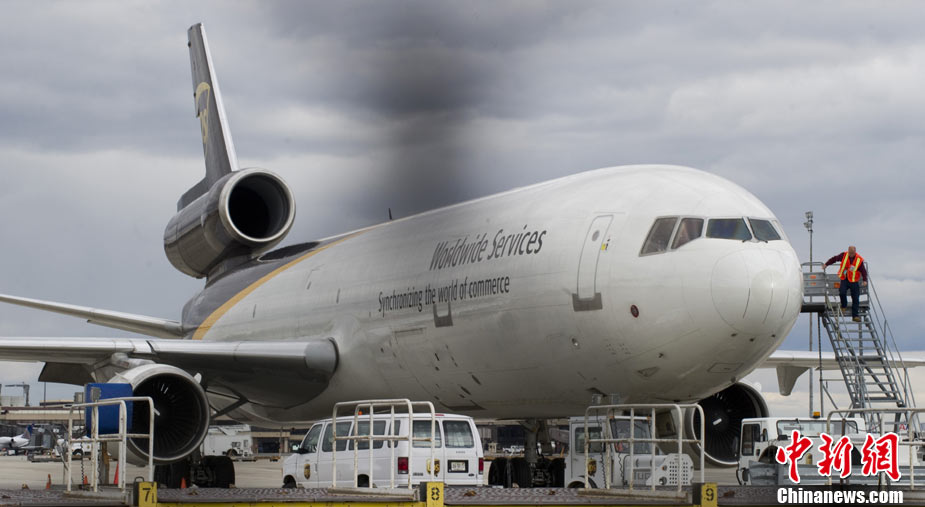10月29日,一架從也門飛往美國(guó)的UPS貨機(jī)在倫敦機(jī)場(chǎng)接受檢查時(shí),發(fā)現(xiàn)疑似爆炸物,隨后奧巴馬命令相關(guān)部門進(jìn)行徹查,以確定此事背后是否還有更大恐怖襲擊陰謀。 圖為美國(guó)新澤西紐瓦克機(jī)場(chǎng),一架美國(guó)聯(lián)合包裹快遞(UPS)公司貨機(jī)停在停機(jī)坪上。
