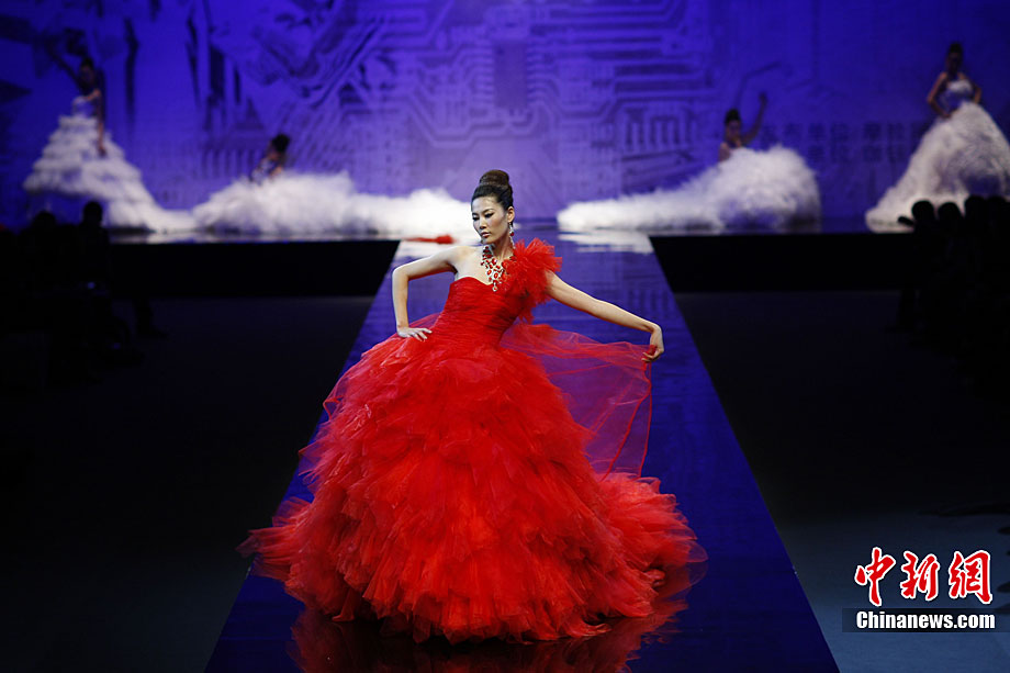 10月31日晚,“東方夏娃”托尼、李當岐、張肇達時裝藝術(shù)秀在北京舉行,這場秀是由3位在文化藝術(shù)領(lǐng)域幾乎沒有“交集”的大師級人物共同主創(chuàng),他們是國內(nèi)知名教育學者李當岐教授、英國頂級雕塑家托尼、杰出服裝設(shè)計師張肇達。中新社記者 盛佳鵬 攝