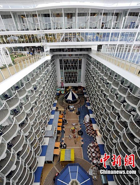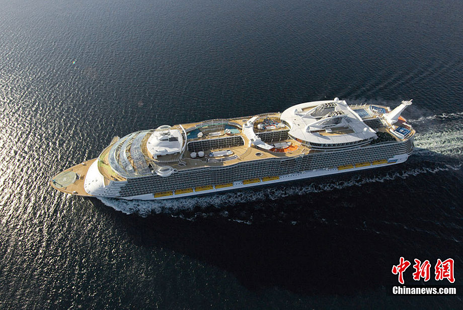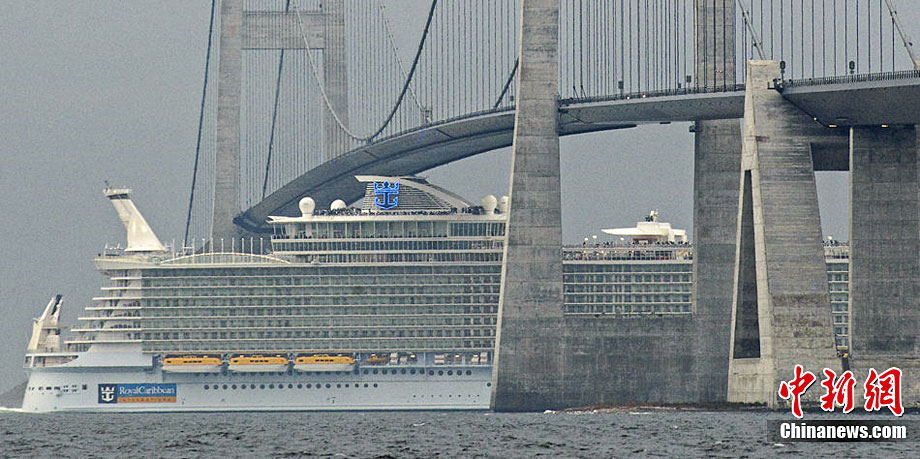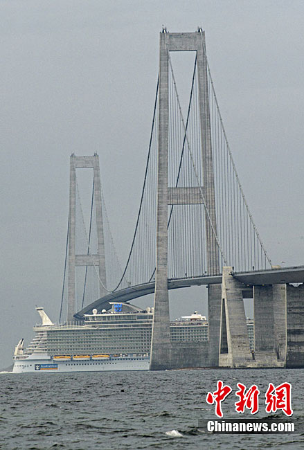近日,世界最大郵輪“海洋魅力號”于芬蘭圖爾庫船廠完工,并將于2010年12月進行首航。這艘堪稱海上奇觀的豪華郵輪長361米、寬66米,水面高72米,排水量達22.5萬噸,共有16層甲板和2704個客艙,可搭載6360名游客和2100名船員。尚未經(jīng)受大風大浪考驗的海洋魅力號在從造船廠前往美國佛羅里達州的過程中順利通過了丹麥一座距離船頂4厘米的大橋。