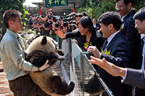 11月2日,在廣州亞運會倒計時10天之際,國家林業(yè)局、廣東省人民政府、廣州亞組委在廣州市香江野生動物世界長隆大熊貓中心舉行了隆重的啟動儀式,由12只國寶熊貓的組成“亞運助威團”正式與游客見面。袁宏偉 攝 圖片來源:cnsphoto