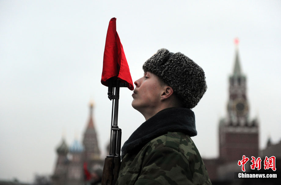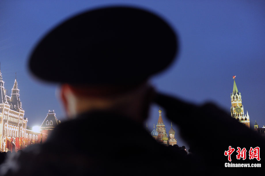 11月3日,準(zhǔn)備參加紅場閱兵的士兵在俄羅斯首都莫斯科進(jìn)行彩排。11月7日俄羅斯將在莫斯科紅場舉行盛大閱兵儀式,紀(jì)念1941年11月7日的紅場閱兵69周年。