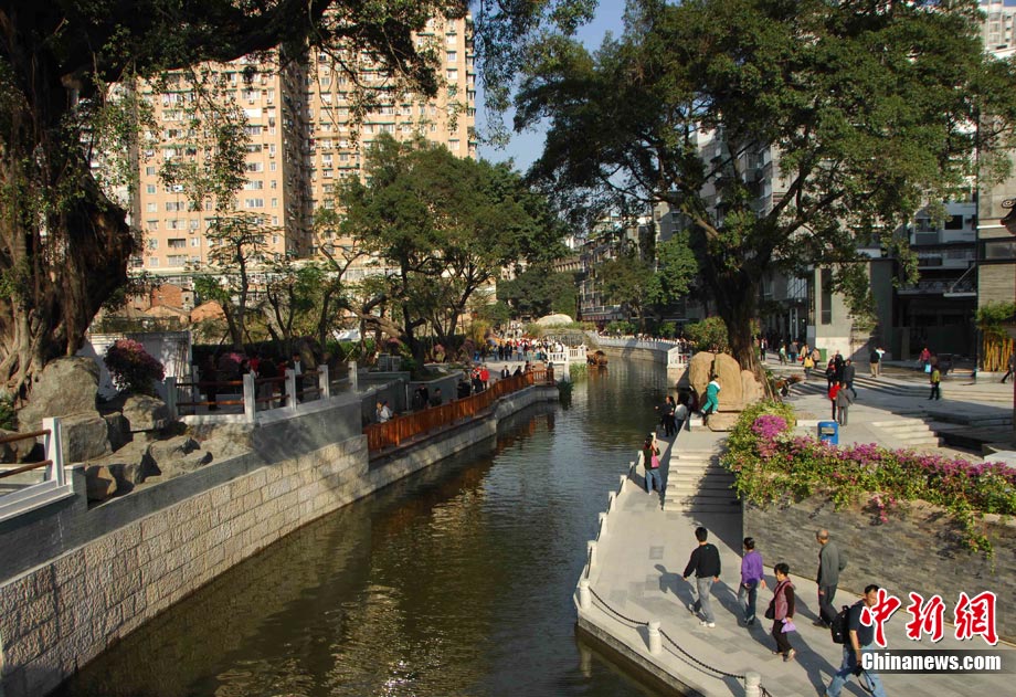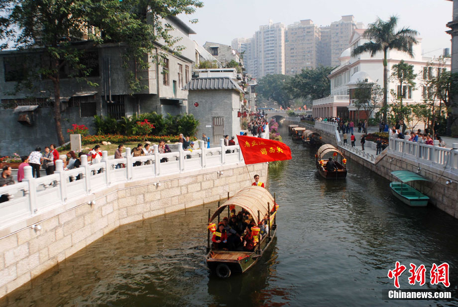 經(jīng)過大半年的揭蓋復涌,整飾一新的廣州荔枝灣涌,如今重現(xiàn)嶺南水鄉(xiāng)美景的風貌。11月4日,“看亞運,游西關(guān)”荔灣精典一日游活動在荔枝灣舉行了啟動儀式,迎來了數(shù)千名游客和市民。中新社記者 梁永強 攝