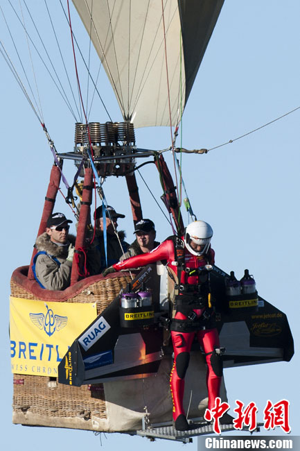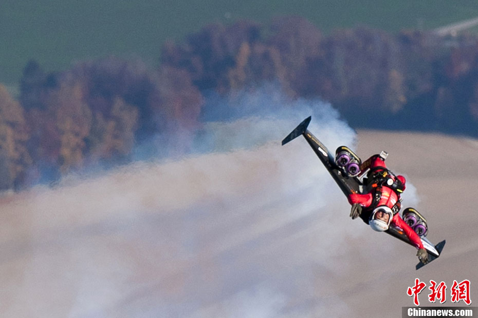 當(dāng)?shù)貢r(shí)間2010年11月5日,瑞士貝爾謝“火箭人”伊夫-羅西使用裝有小型噴氣發(fā)動(dòng)機(jī)的噴氣動(dòng)力翼,首次完成空中翻轉(zhuǎn)特技。