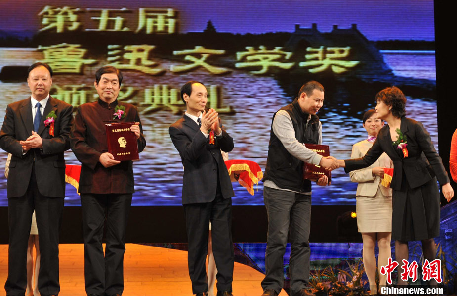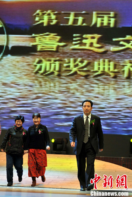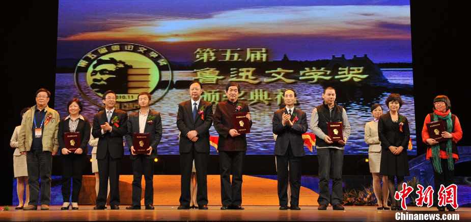 11月9日晚,第五屆魯迅文學(xué)獎(jiǎng)?lì)C獎(jiǎng)典禮在魯迅故鄉(xiāng)浙江紹興舉行。30位魯迅文學(xué)獎(jiǎng)得主分別獲得報(bào)告文學(xué)、散文雜文、詩歌、評(píng)論、中篇小說、短篇小說等類別的獎(jiǎng)項(xiàng)。武漢市紀(jì)委書記車延高的詩集《向往溫暖》摘得魯迅文學(xué)獎(jiǎng)詩歌獎(jiǎng)項(xiàng)。袁云 攝