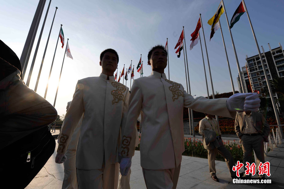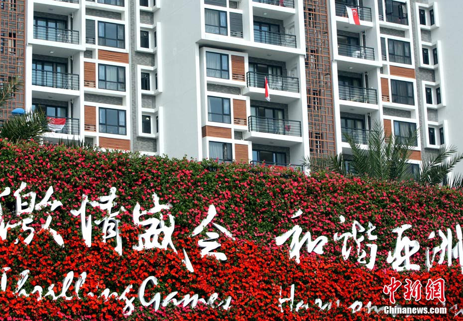 和歷屆亞運(yùn)會(huì)不同,廣州亞運(yùn)會(huì)沒有延續(xù)“亞運(yùn)村”的概念,而是打造了一座亞運(yùn)城,而運(yùn)動(dòng)員村則是亞運(yùn)城的核心。運(yùn)動(dòng)員村位于亞運(yùn)城內(nèi),總建筑面積59.1332萬平方米。運(yùn)動(dòng)員村共有49棟公寓樓、3598套公寓、9272間客房。應(yīng)該說,運(yùn)動(dòng)員村是一個(gè)高度專業(yè)化、集約化和規(guī)范化的居住區(qū)域,這里將為運(yùn)動(dòng)員及隨隊(duì)官員提供住宿分配、客房、洗衣、布草洗滌、居民服務(wù)中心等住宿服務(wù),全部是一條龍服務(wù)。圖為運(yùn)動(dòng)員公寓外景,不少運(yùn)動(dòng)員將自己國家的國旗懸掛在窗外。中新網(wǎng)記者 金碩 攝