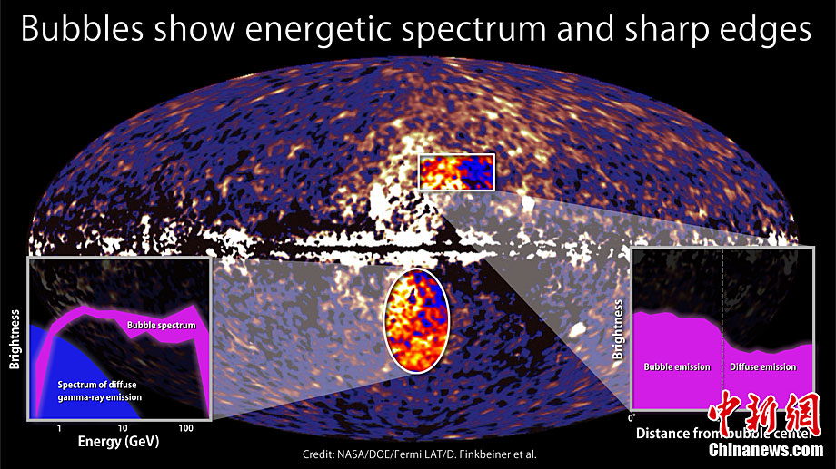 研究人員稱(chēng),宇宙氣泡結(jié)構(gòu)表明數(shù)百萬(wàn)年前存在著爆炸式的恒星誕生,或者它們形成于銀河系中心一個(gè)超大質(zhì)量黑洞噴射大量氣體和灰塵之中。美國(guó)哈佛-史密遜天體物理學(xué)研究中心的道格-芬克貝涅(Doug Finkbeiner)是該項(xiàng)研究負(fù)責(zé)人,他說(shuō):“目前最新發(fā)現(xiàn)的銀河系巨大氣泡結(jié)構(gòu)仍存在著謎團(tuán),我們并不能完全理解它的特性或者起源!
