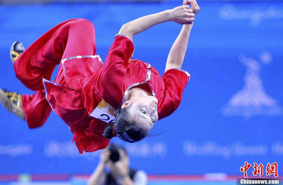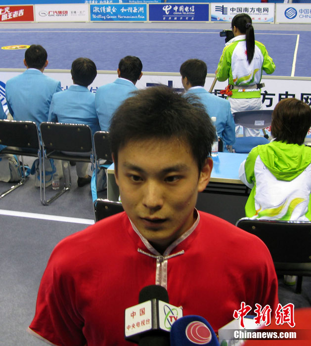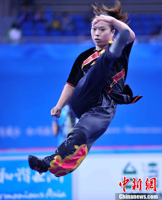 11月13日上午,中國選手袁曉超奪得男子長拳冠軍,這也是本屆亞運(yùn)會(huì)誕生的首枚金牌。 中新社記者 柯小軍 攝