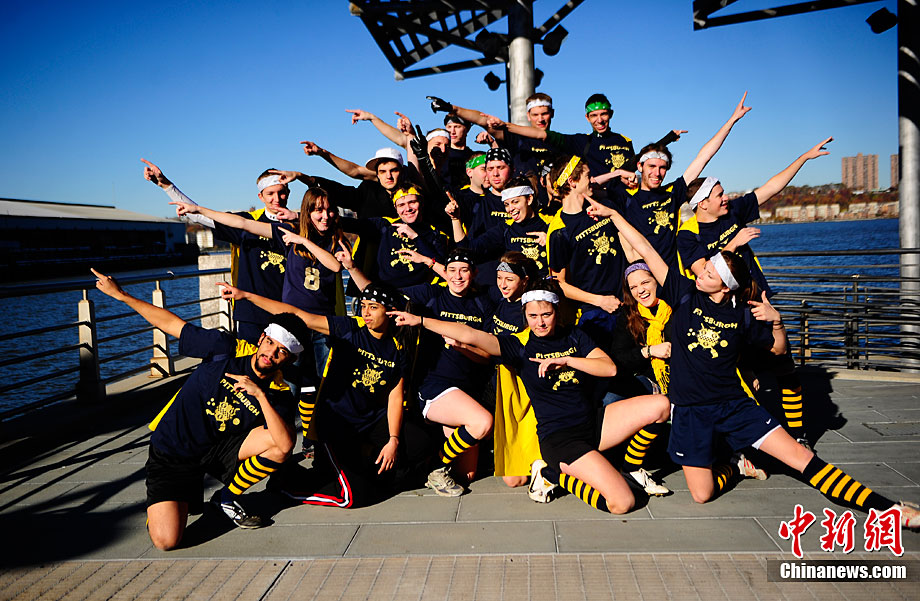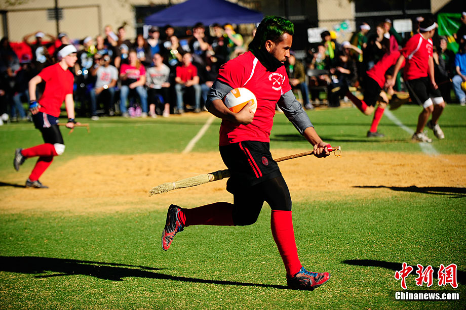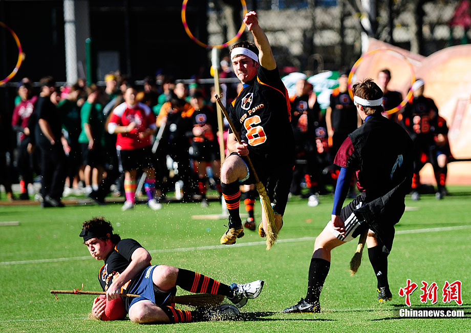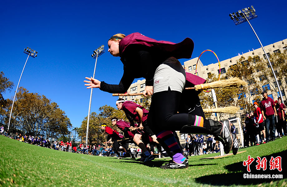 當?shù)貢r間11月13日,數(shù)百名哈利波特迷們在美國紐約舉行了第四屆魁地奇世界杯比賽?催^《哈利·波特》小說或電影的人都會對其中描寫的魁地奇球賽印象深刻,F(xiàn)實版的魁地奇比賽嚴格遵循原著風格,并發(fā)展成了一項混合手球、躲避球,還摻雜了一點曲棍球的新奇運動。