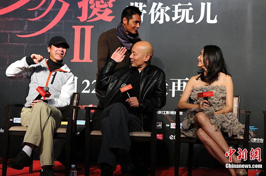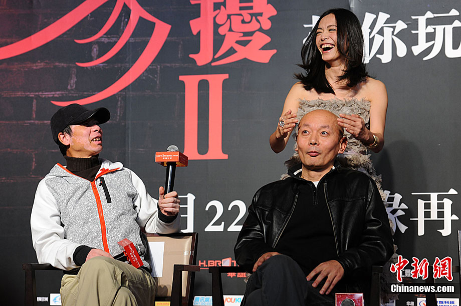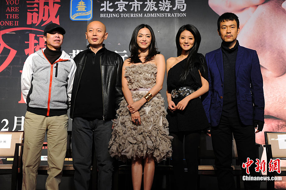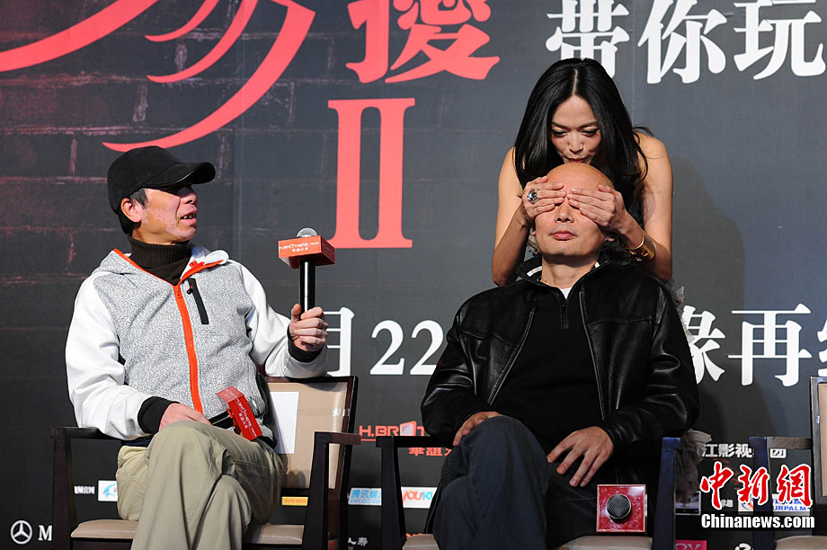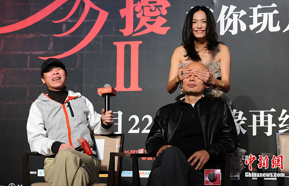 11月14日,將于12月22日賀歲上映的《非誠勿擾2》在北京舉行發(fā)布會,發(fā)布電影的美景花絮,并隆重介紹本次影片與北京市旅游局的合作。發(fā)布會上,除主演葛優(yōu)外,姚晨、安以軒、廖凡、邵兵并未參演前作《非誠勿擾》的拍攝,這也是續(xù)集新成員的第一次集體亮相。發(fā)布會上馮小剛導(dǎo)演證實,“《非誠勿擾2》海報上蒙葛優(yōu)眼睛的手是姚晨的!爆F(xiàn)場媒體要求姚晨與葛優(yōu)情景重現(xiàn),盡管姚晨笑說,她跟舒淇是好姐妹,不能在人不在的時候占秦奮便宜。但還是難以抵擋眾人要求盛情難卻,現(xiàn)場蒙住了葛優(yōu)雙眼并送上香吻,葛優(yōu)事后享受地說“不錯”。中新社記者 李學(xué)仕 攝