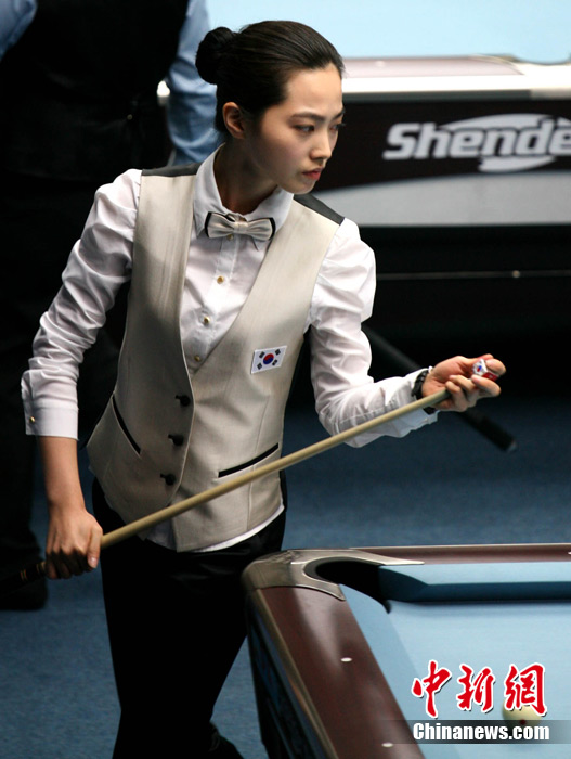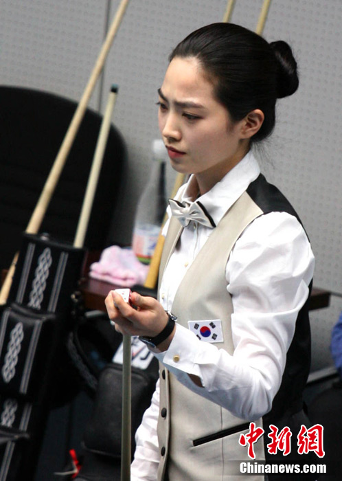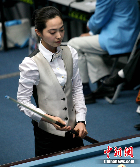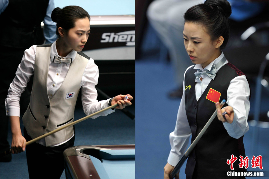11月15日,女子美式九球單打預(yù)賽,來(lái)自中國(guó)的潘曉婷和來(lái)自韓國(guó)的車(chē)侑藍(lán)(車(chē)俞嵐)分別戰(zhàn)勝對(duì)手,晉級(jí)下一輪,兩位知名選手的亮相,掀起場(chǎng)內(nèi)的“美麗風(fēng)暴”。