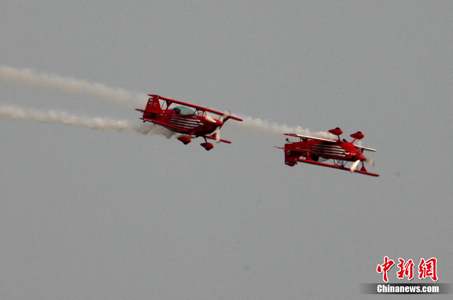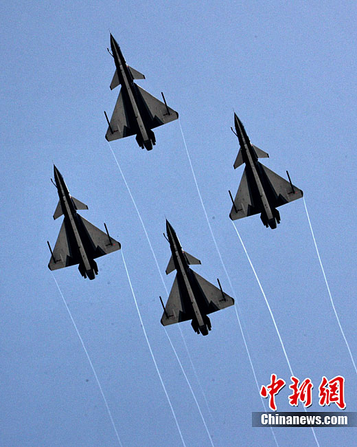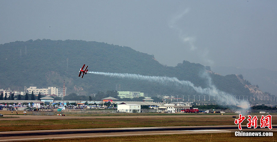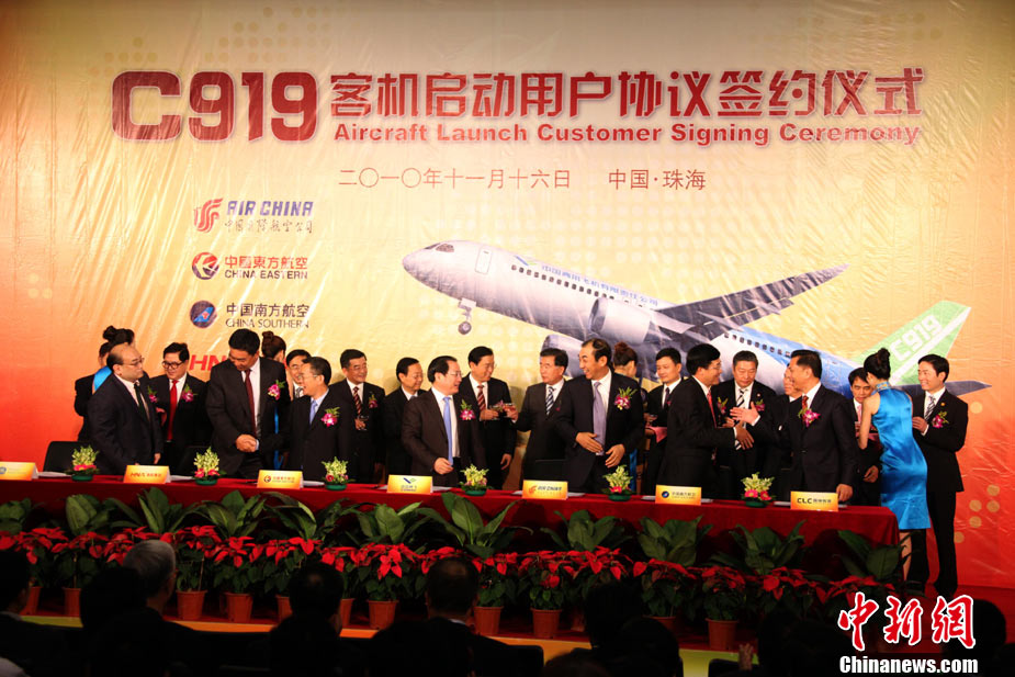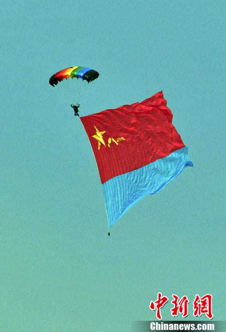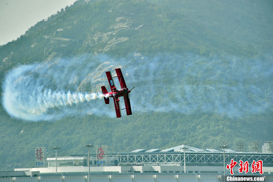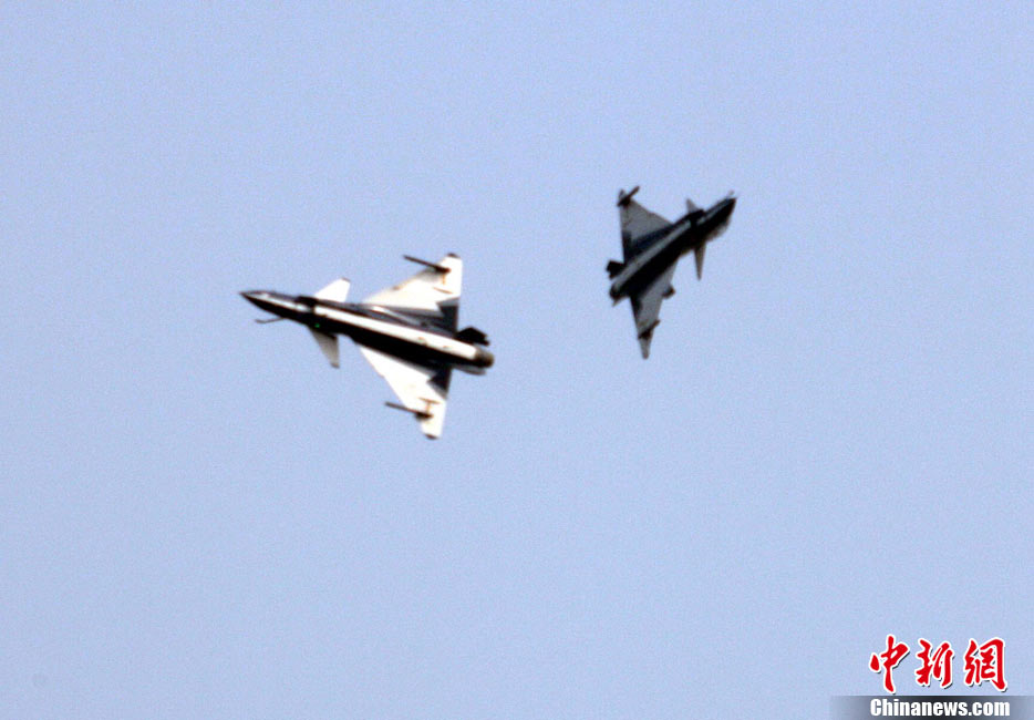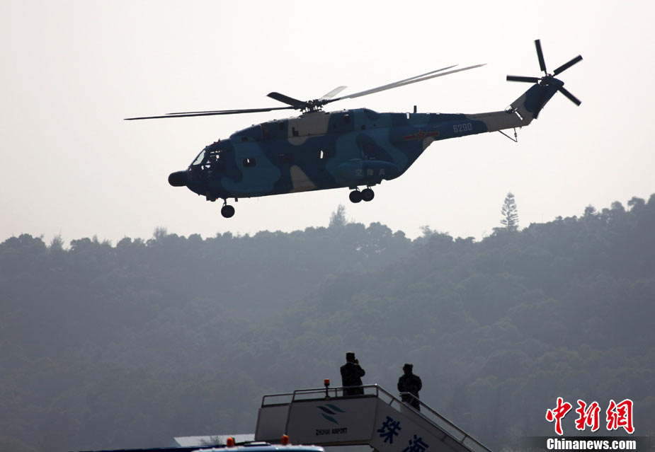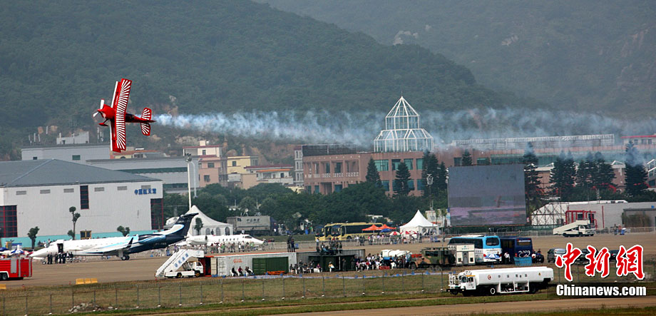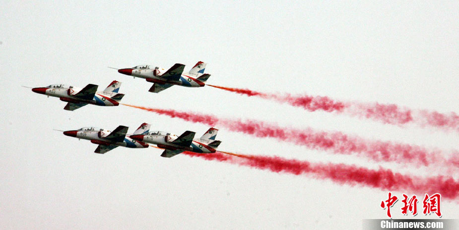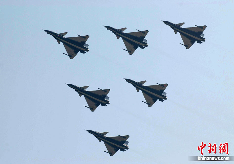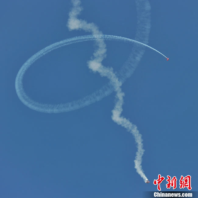 11月17日,在珠海第8屆中國國際航空航天博覽會上,中航公司組織中國獲獎十佳空中乘務(wù)員,向殲10飛機(jī)總設(shè)計師、剛做完飛行表演的空軍八一飛行表演隊(duì)的空中英豪們獻(xiàn)上鮮花。圖片來源:CNSPHOTO 喬天富 攝