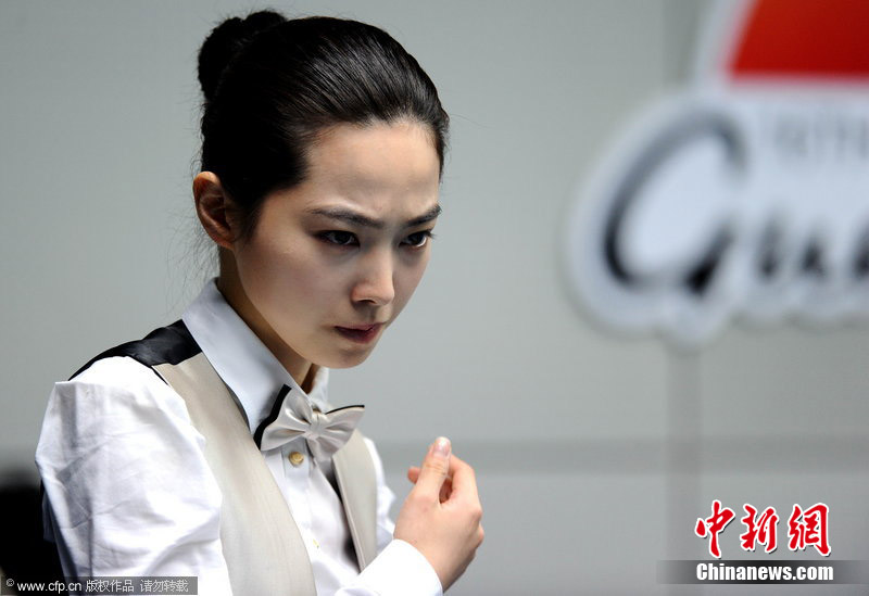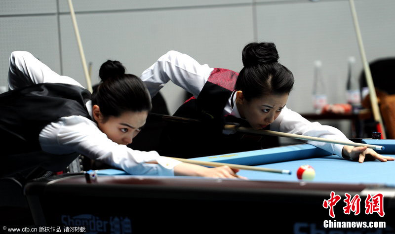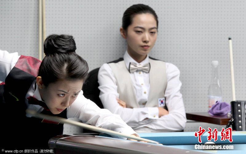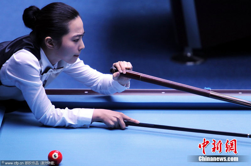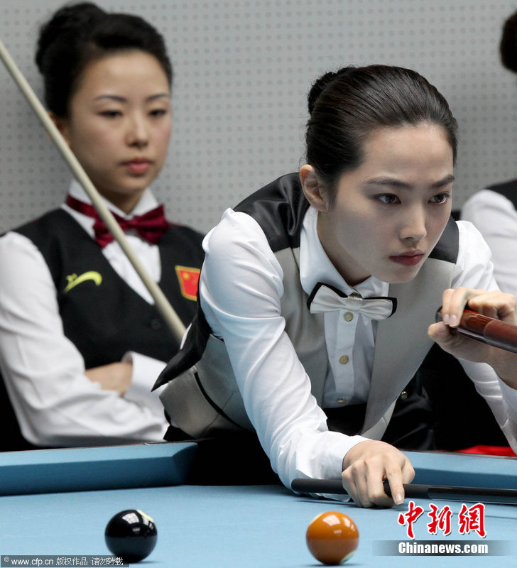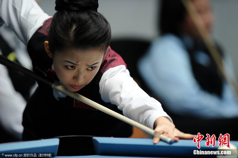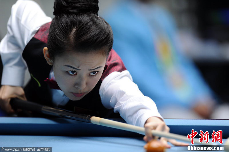 11月18日,2010廣州亞運會女子美式9球單打1/4決賽,兩位公認的臺壇美女展開激烈爭奪,最終,中國選手潘曉婷以7:6的最終比分戰(zhàn)勝韓國的車侑藍(車俞嵐)晉級下一輪。圖片來源:cfp視覺中國