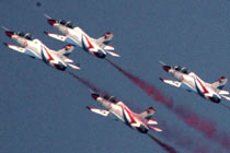 11月19日,在珠海舉辦的第8屆中國國際航空航天博覽會上,美國紅鷹飛行表演隊的雙機(jī)表演像空中雜耍異常精采。中新社發(fā) 喬天富 攝 圖片來源:CNSPHOTO