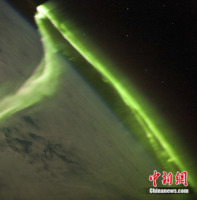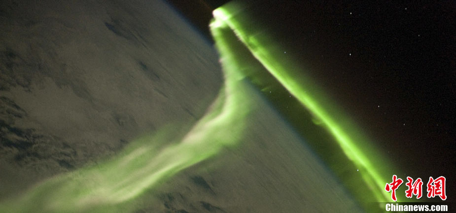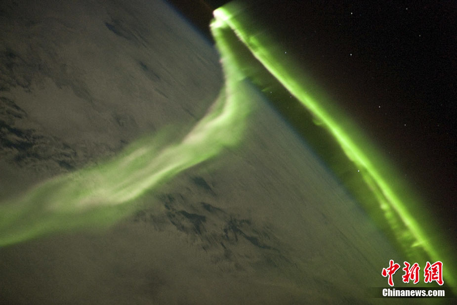 11月19日,美國宇航局NASA公布了宇航員Douglas Weelock從國際空間站拍攝到的北極光炫美景象。